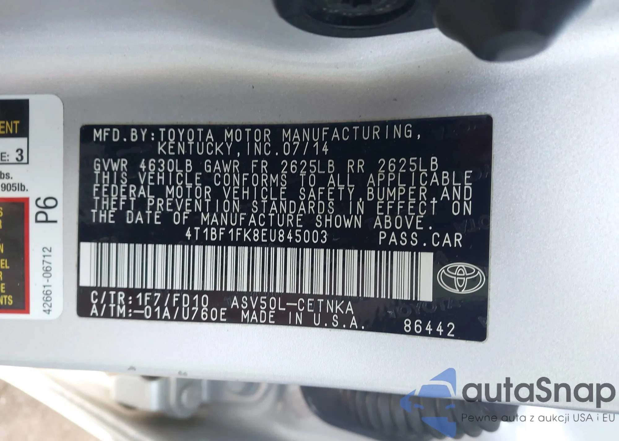 VIN: 4T1BF1FK8EU845003