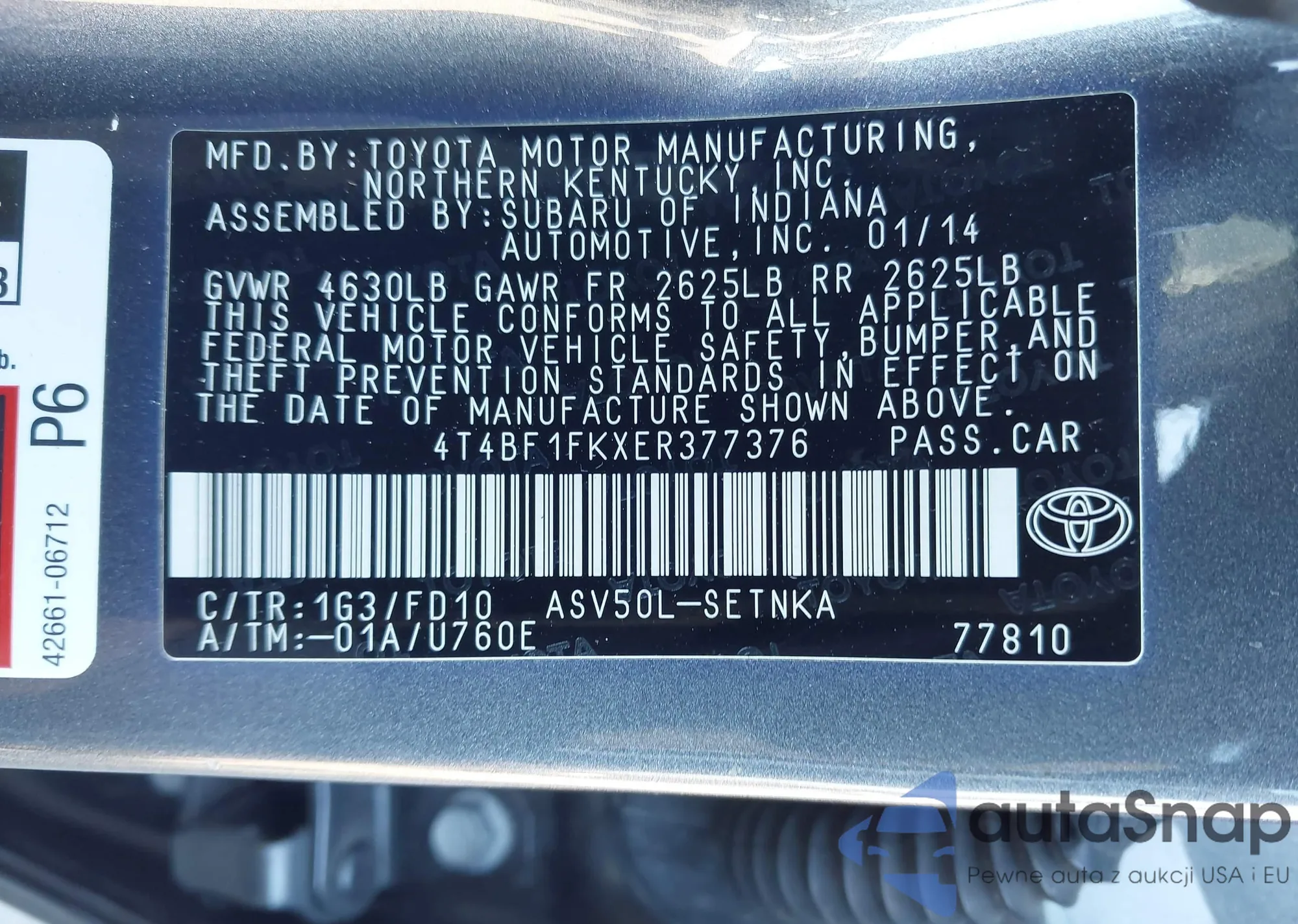 VIN: 4T4BF1FKXER377376