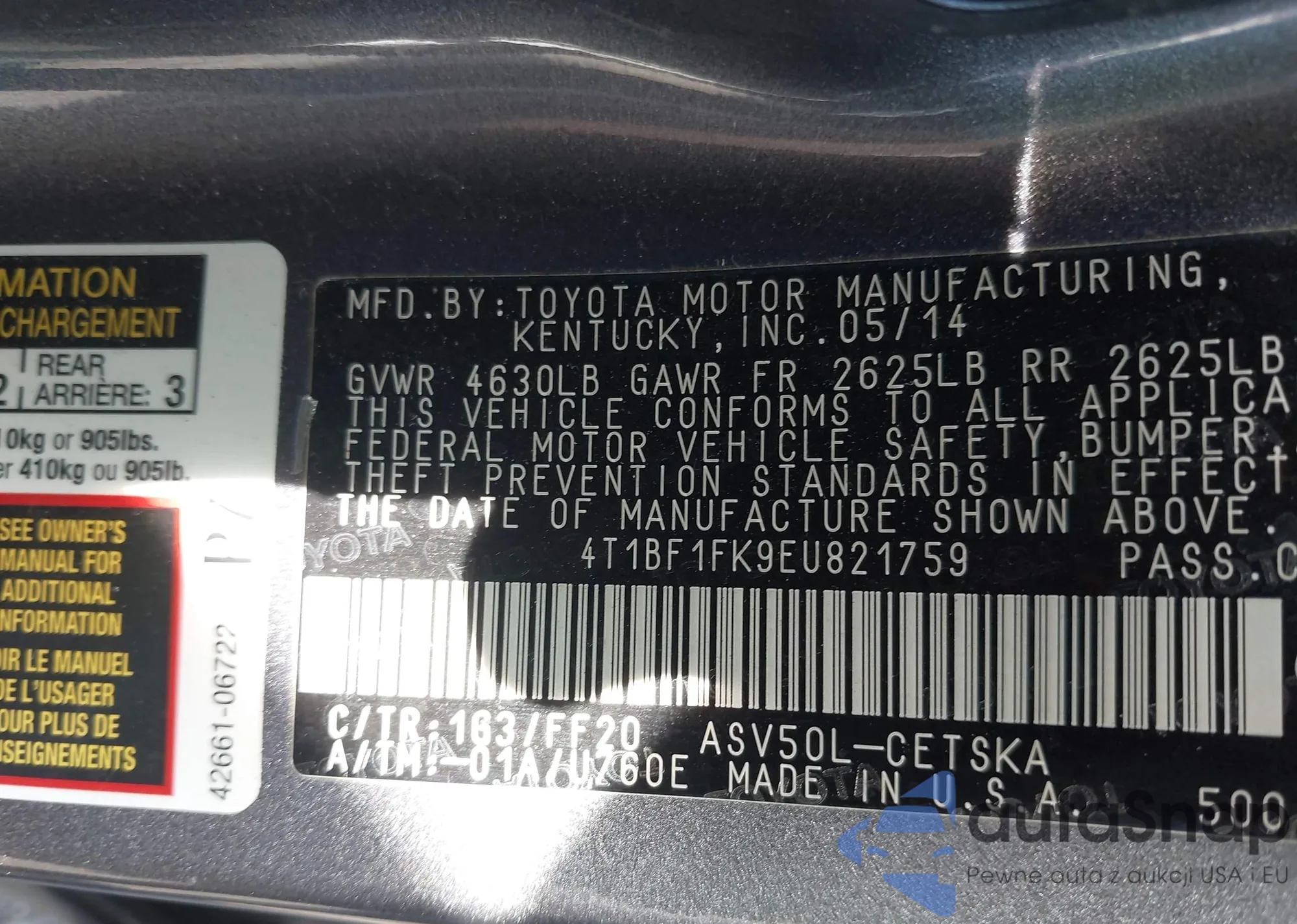VIN: 4T1BF1FK9EU821759