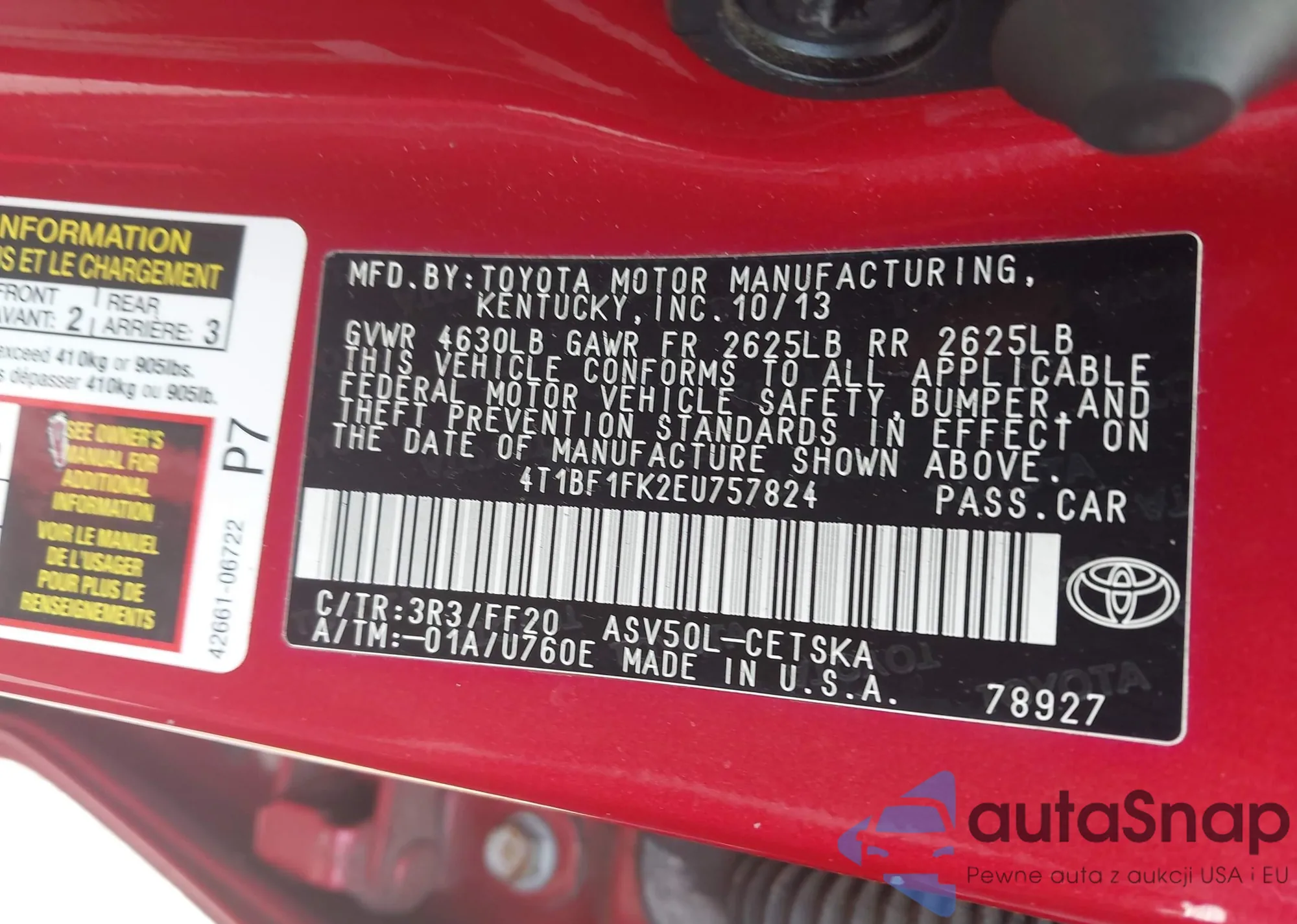 VIN: 4T1BF1FK2EU757824