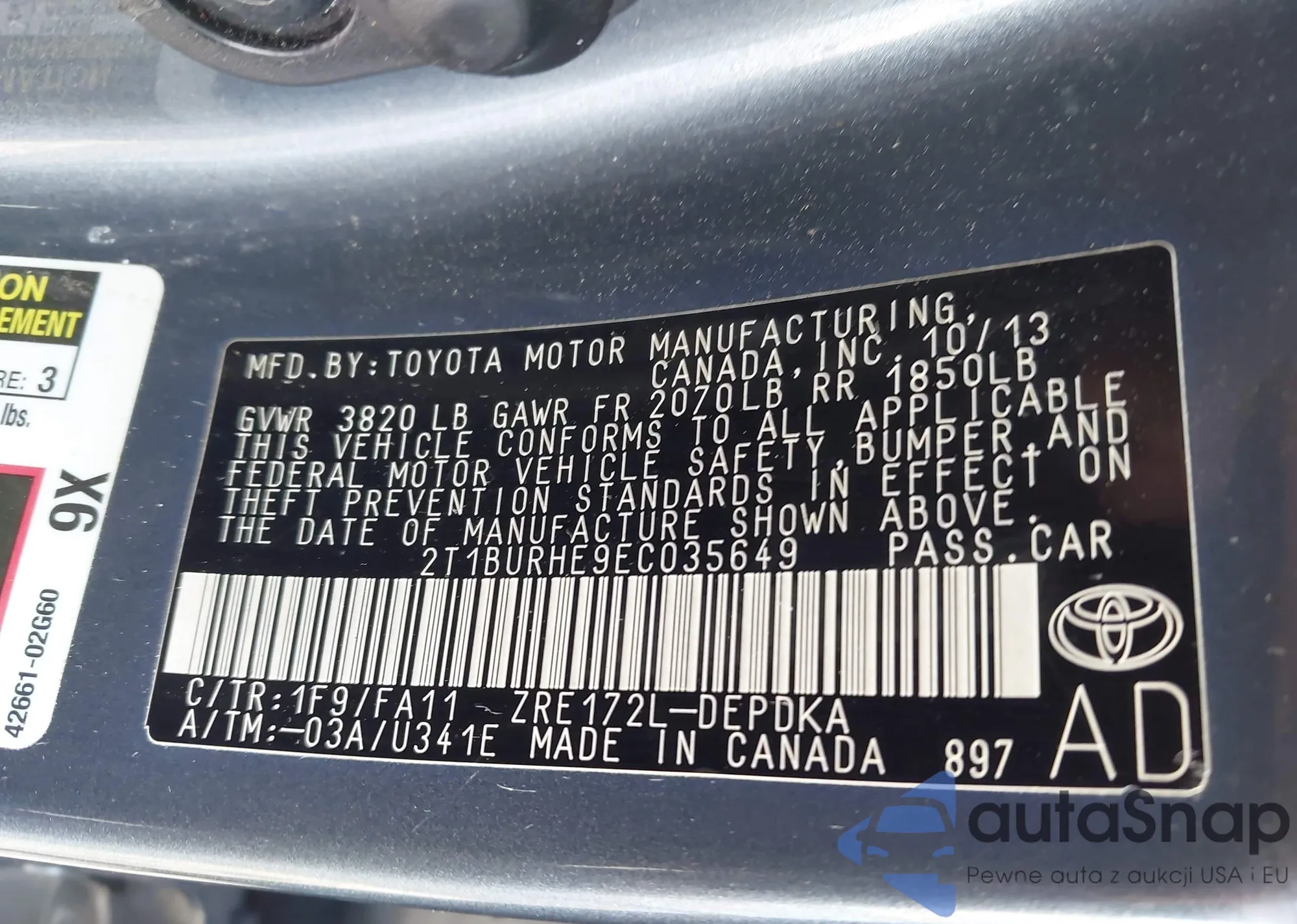 VIN: 2T1BURHE9EC035649