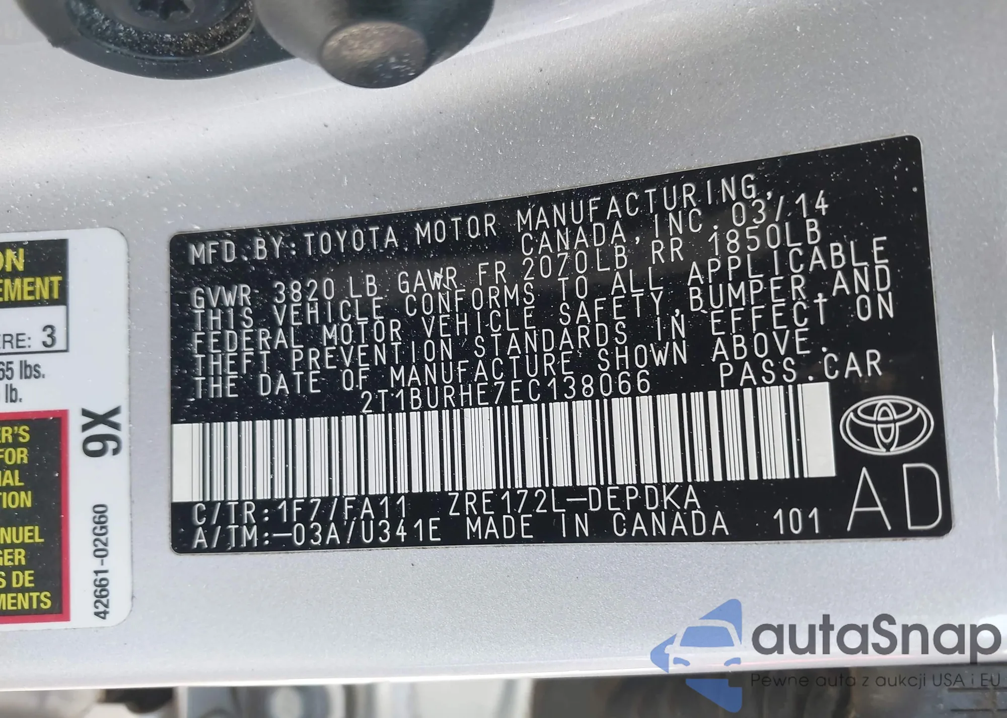 VIN: 2T1BURHE7EC138066