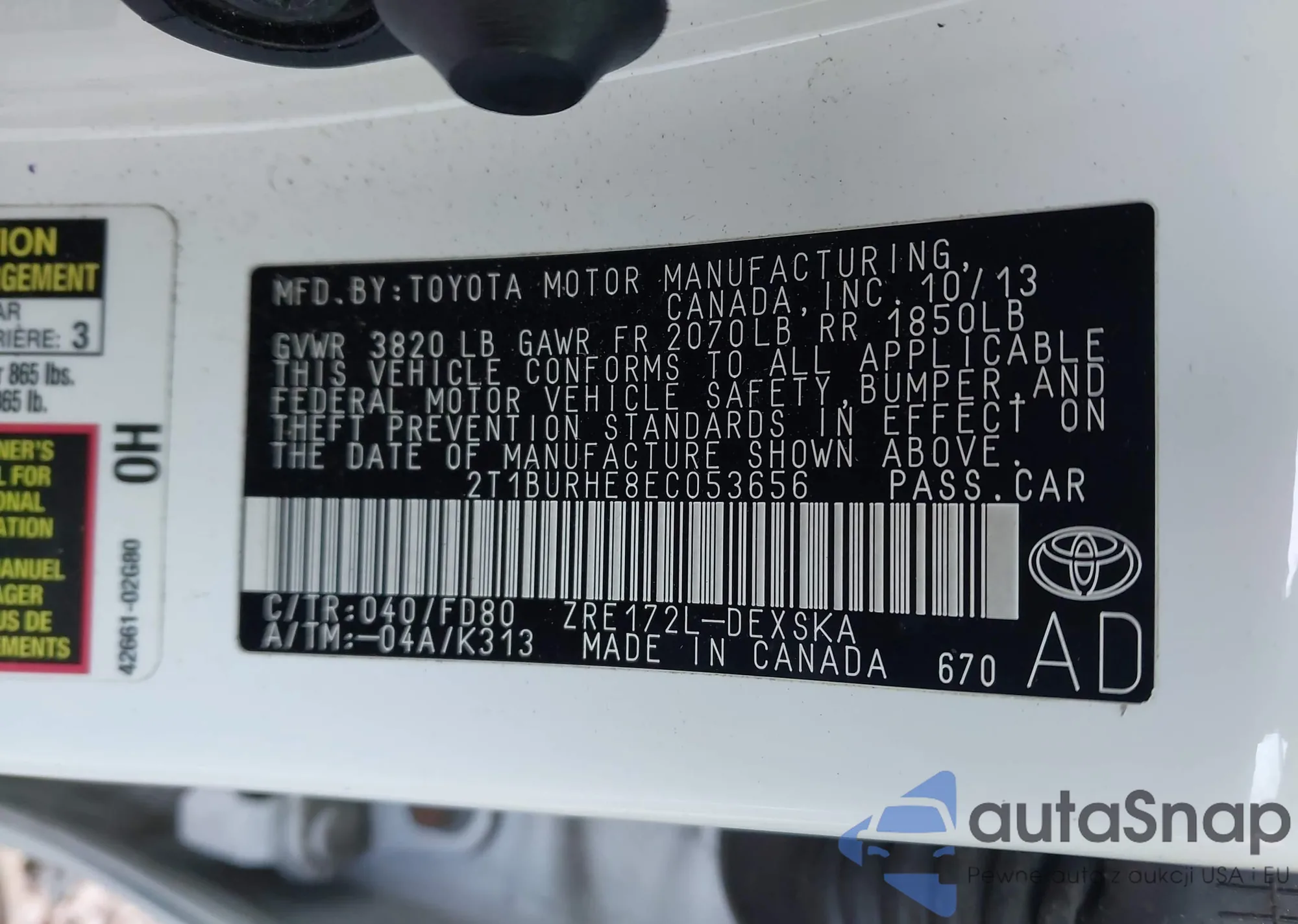 VIN: 2T1BURHE8EC053656