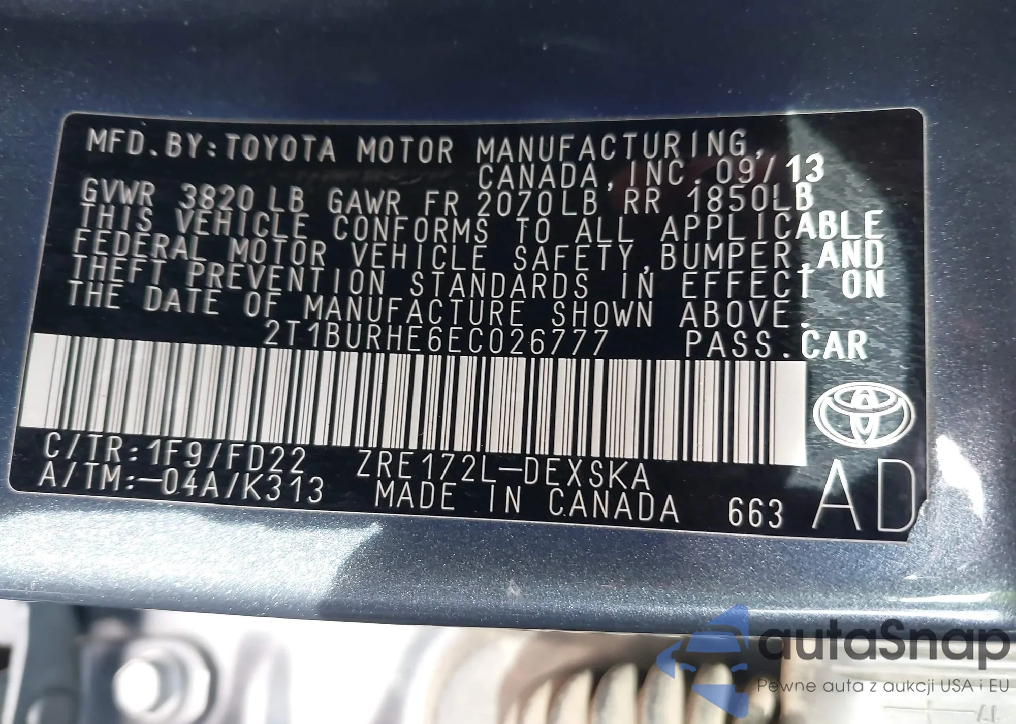 VIN: 2T1BURHE6EC026777
