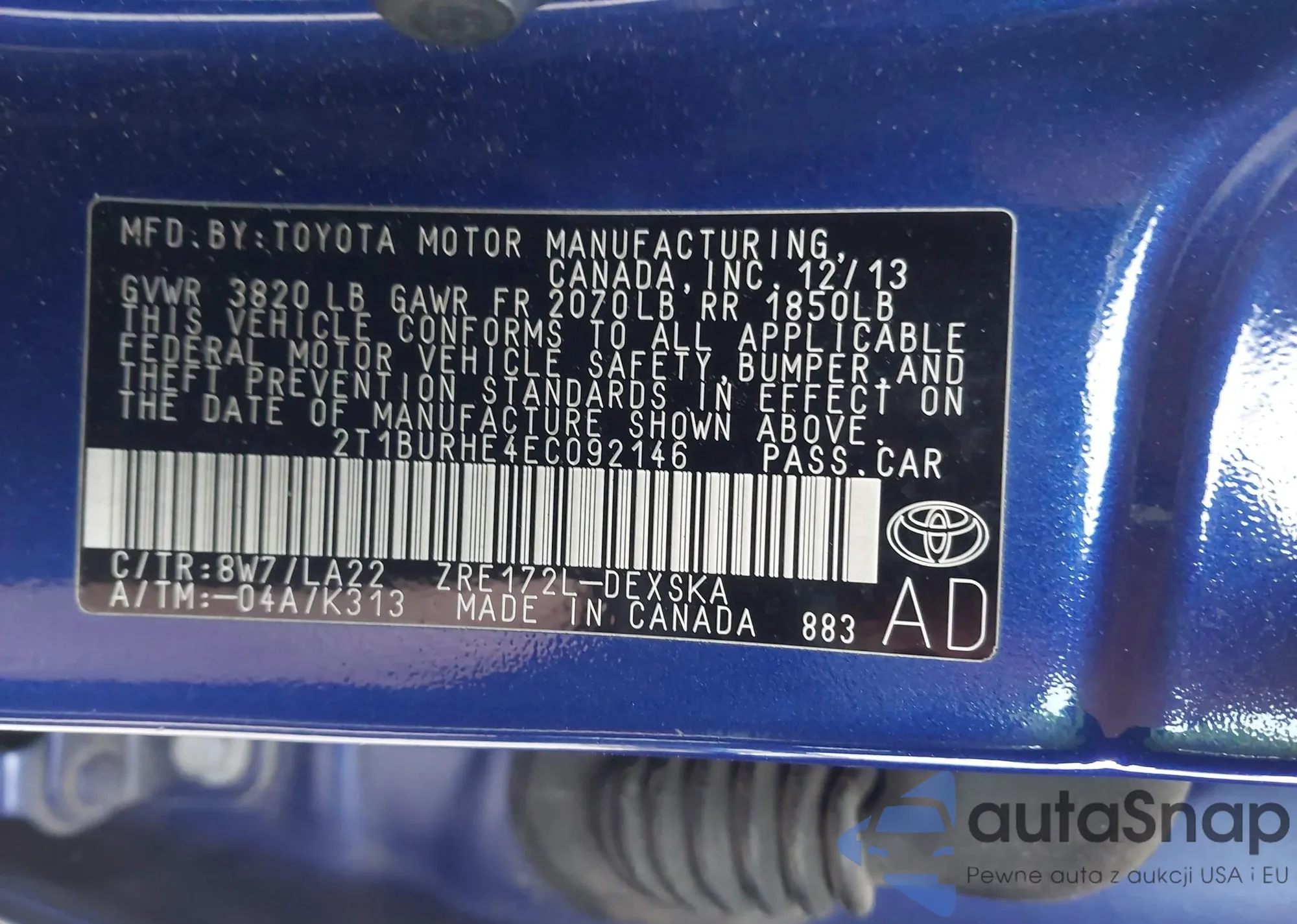 VIN: 2T1BURHE4EC092146