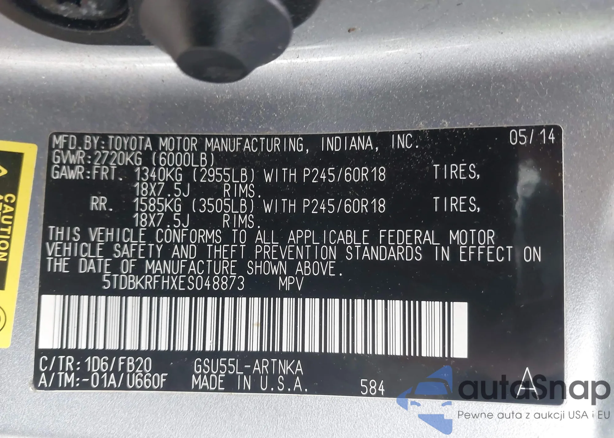 VIN: 5TDBKRFHXES048873