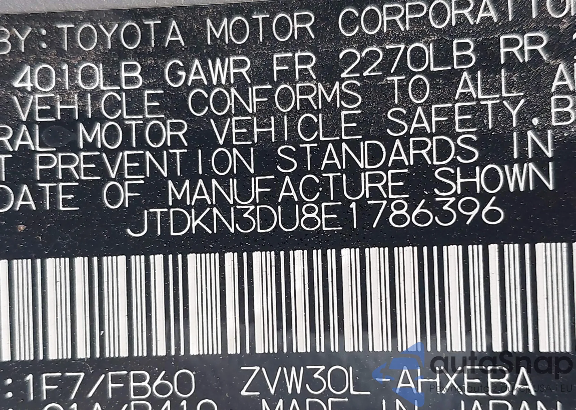 VIN: JTDKN3DU8E1786396