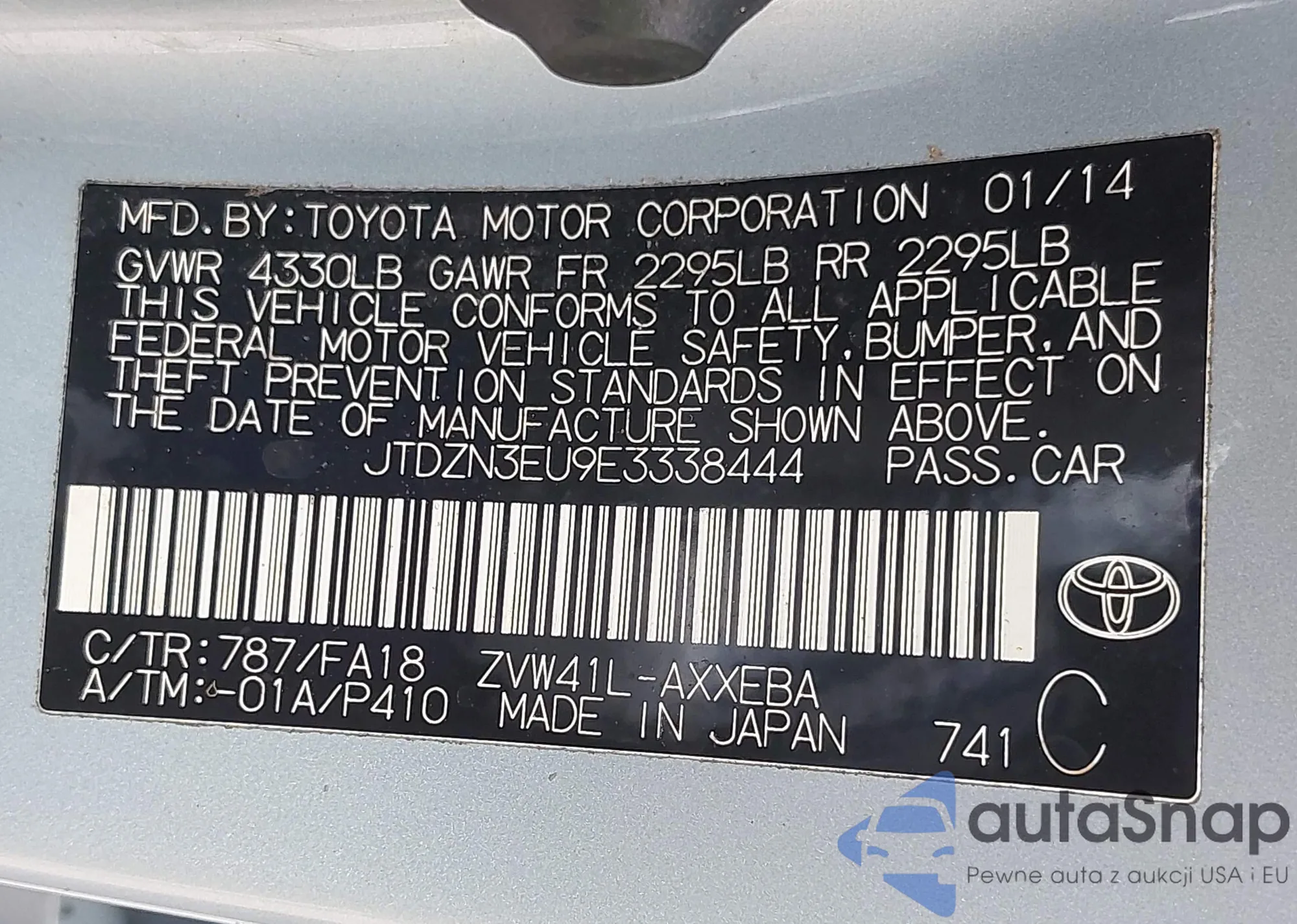 VIN: JTDZN3EU9E3338444