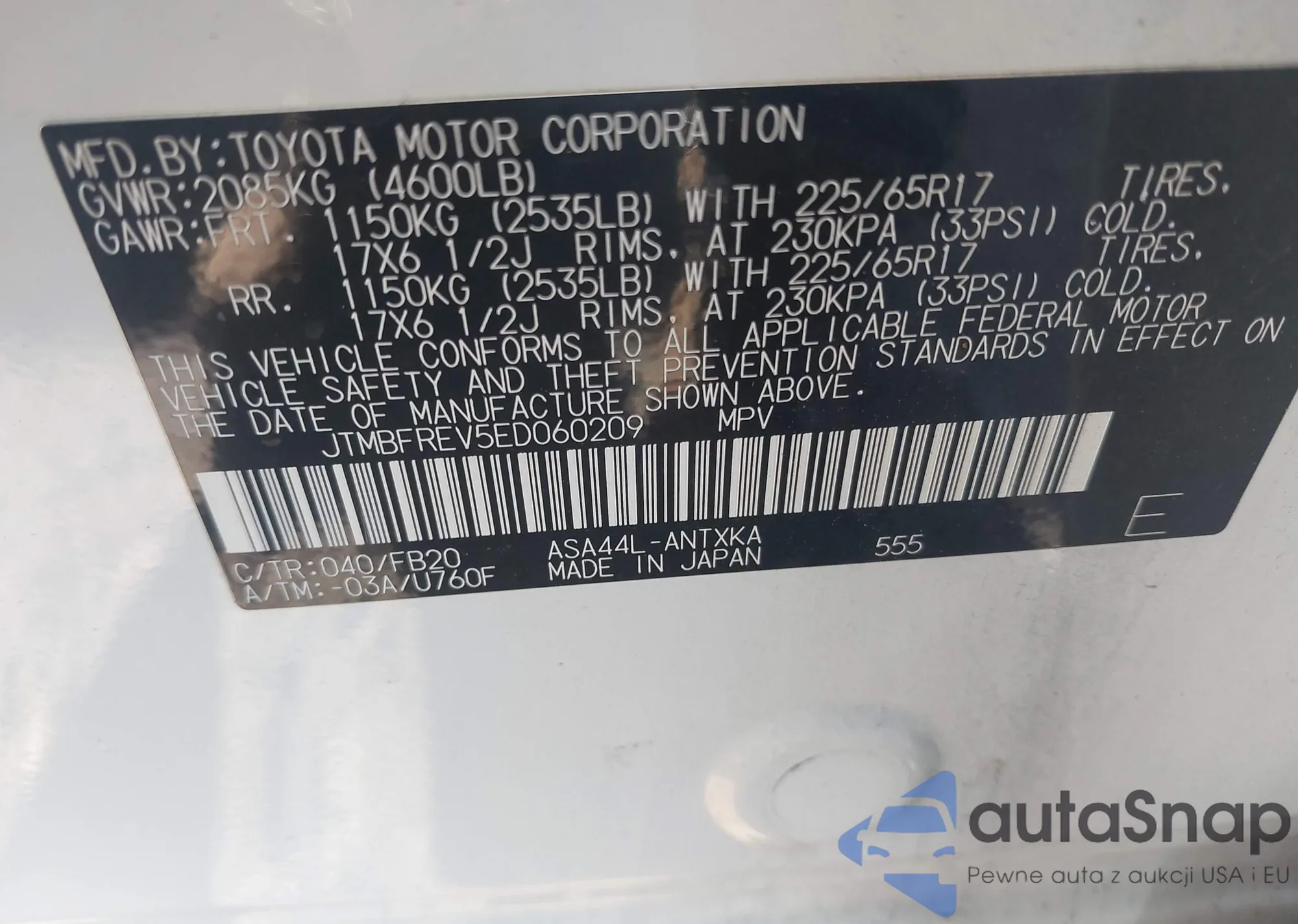 VIN: JTMBFREV5ED060209