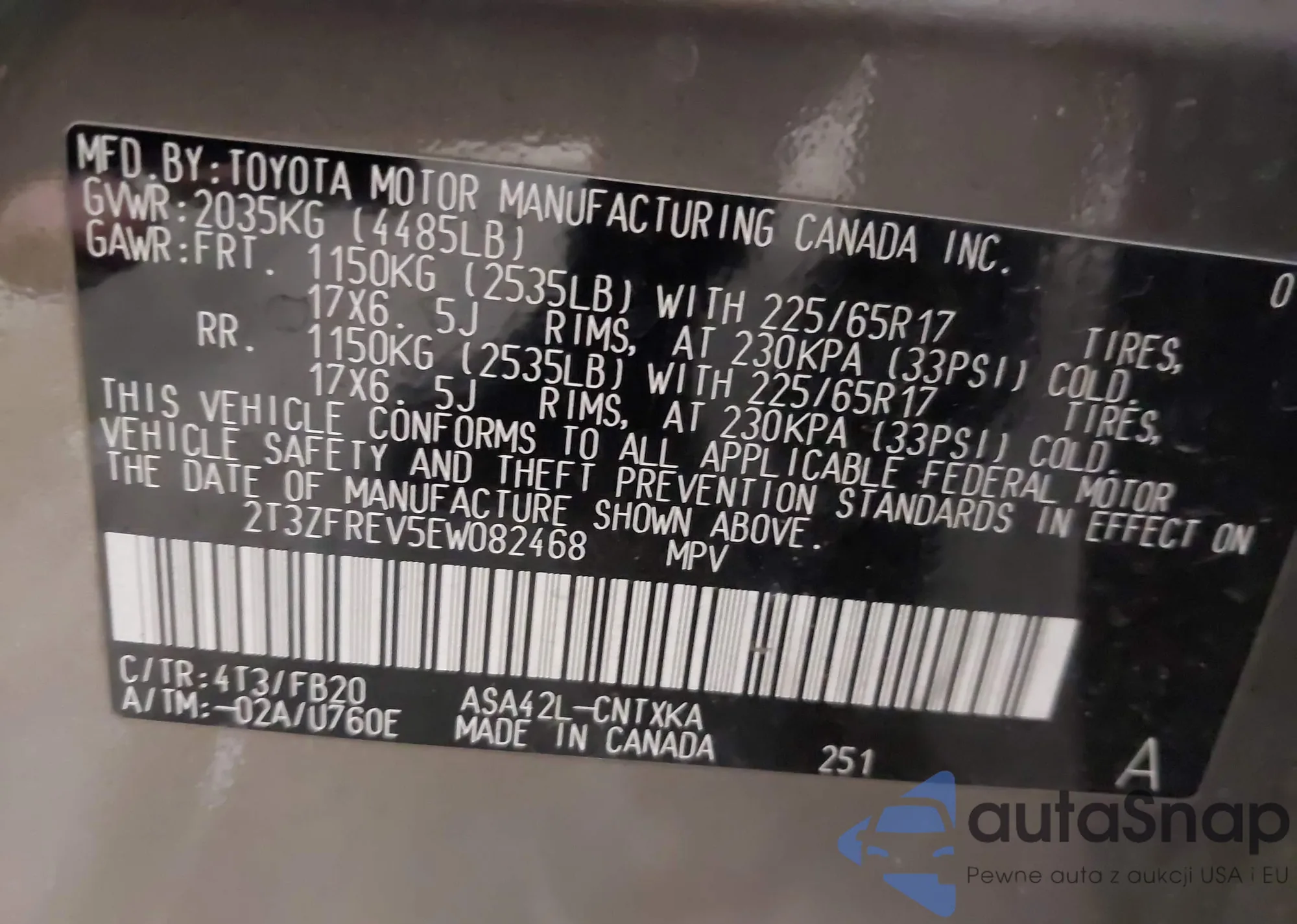 VIN: 2T3ZFREV5EW082468