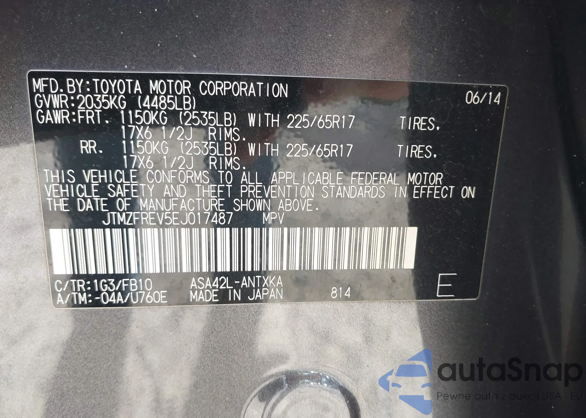 VIN: JTMZFREV5EJ017487
