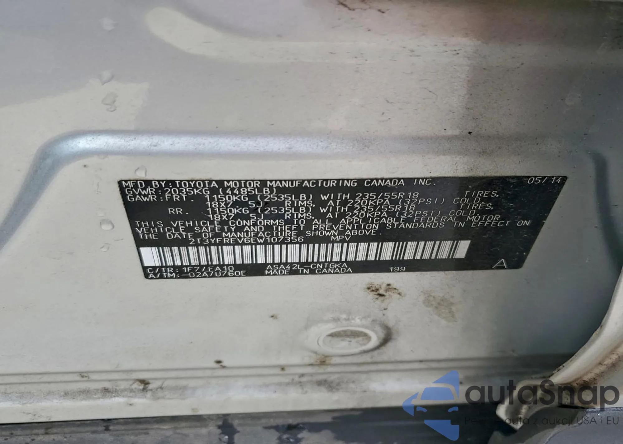 VIN: 2T3YFREV6EW107356