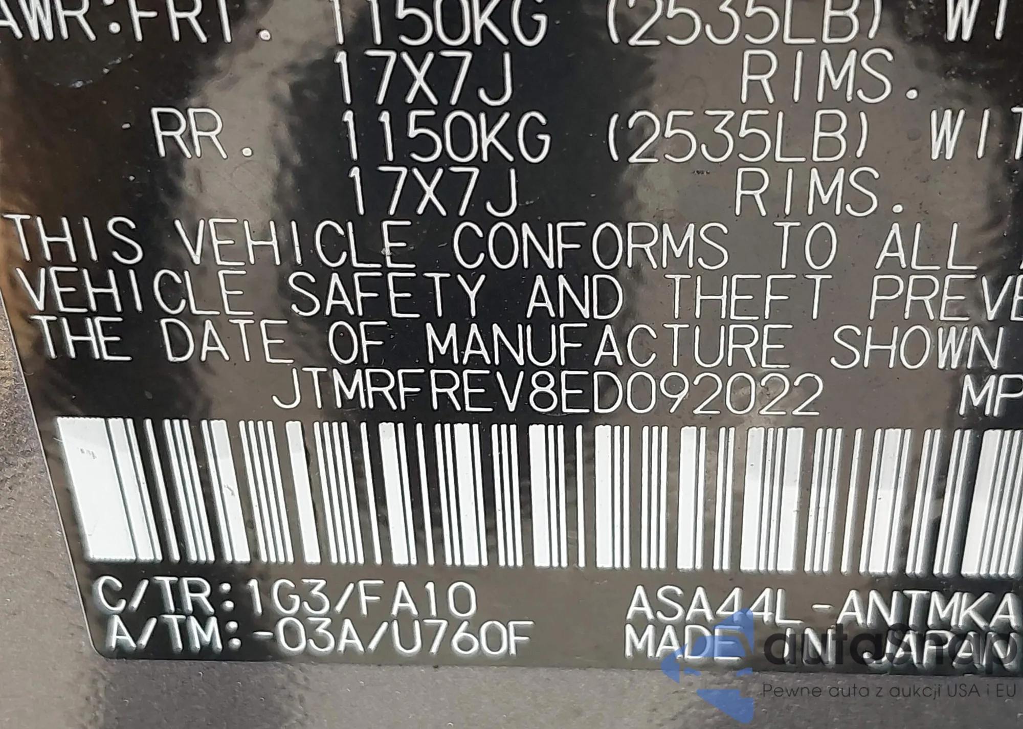 VIN: JTMRFREV8ED092022