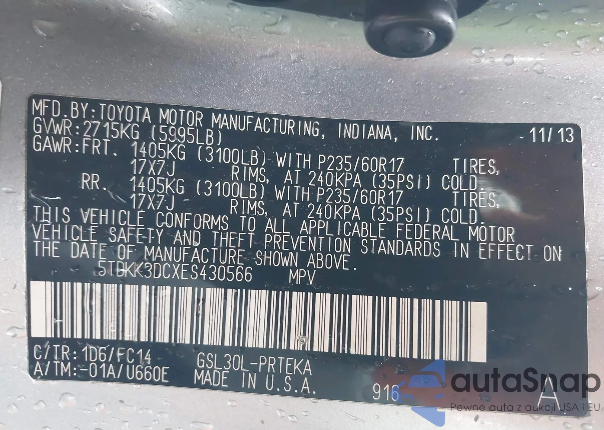VIN: 5TDKK3DCXES430566