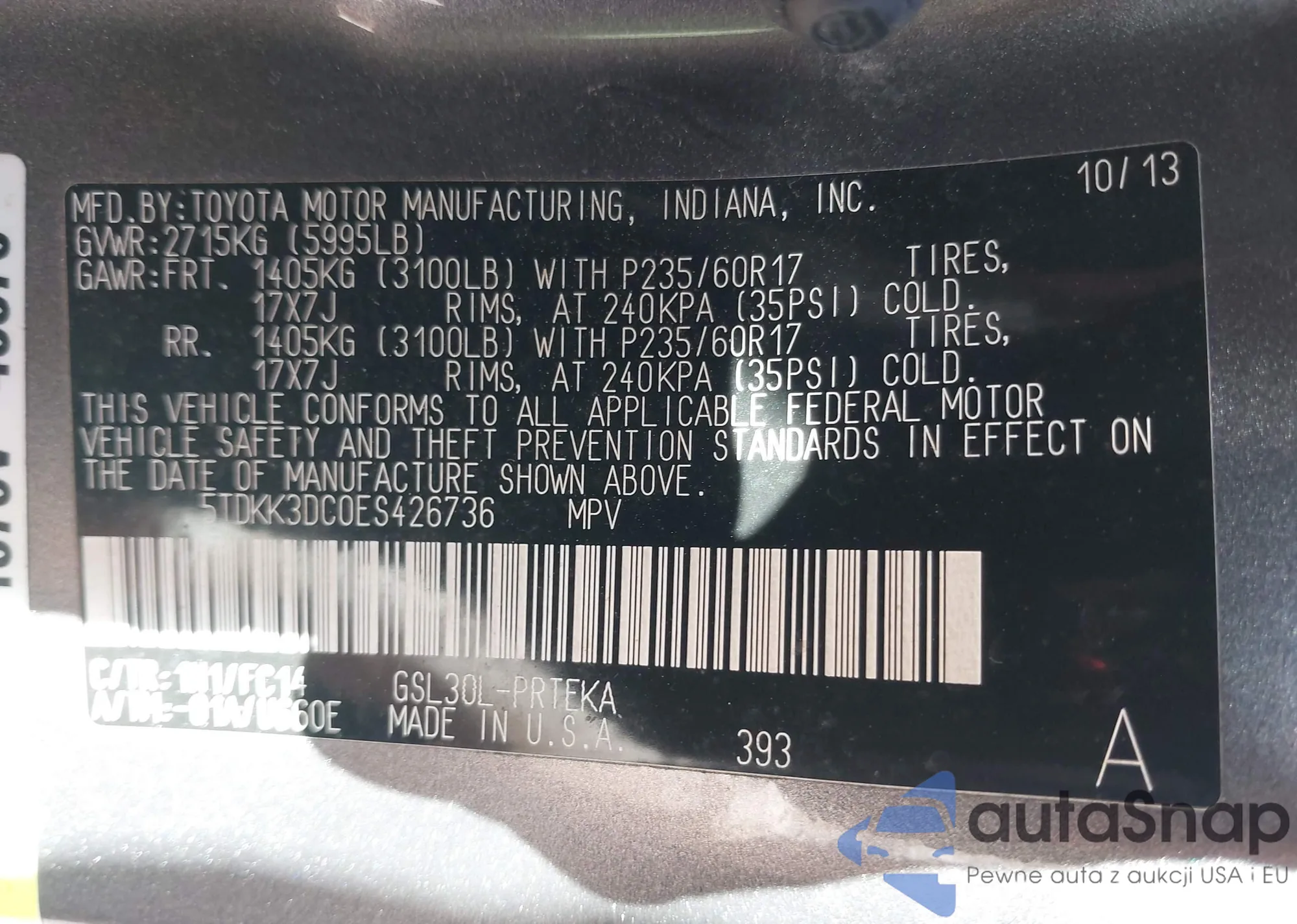 VIN: 5TDKK3DC0ES426736