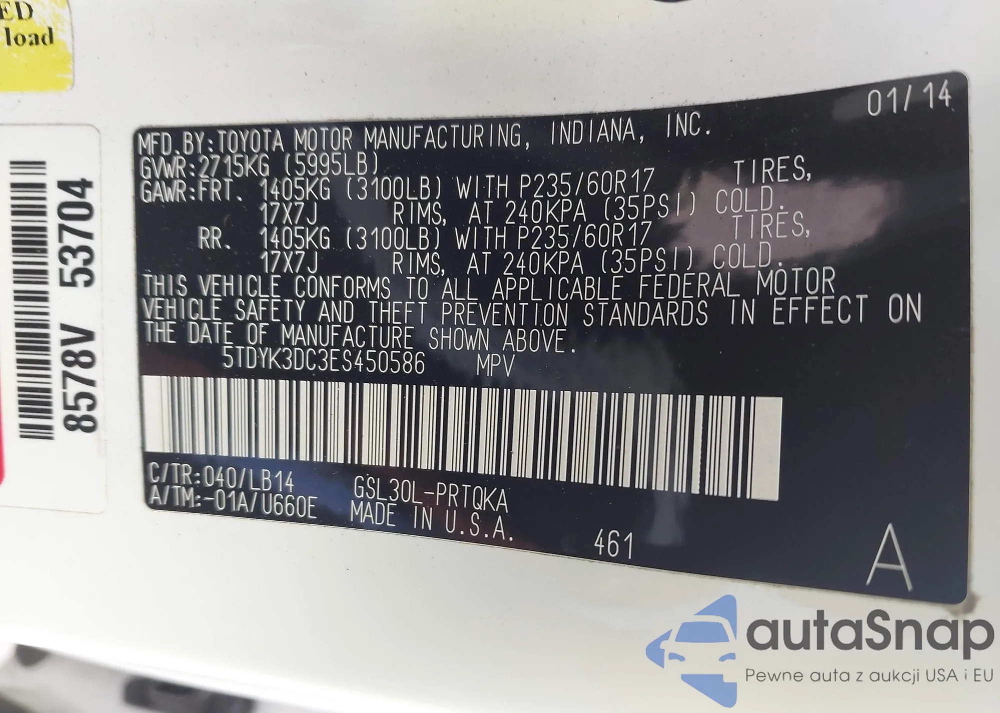 VIN: 5TDYK3DC3ES450586