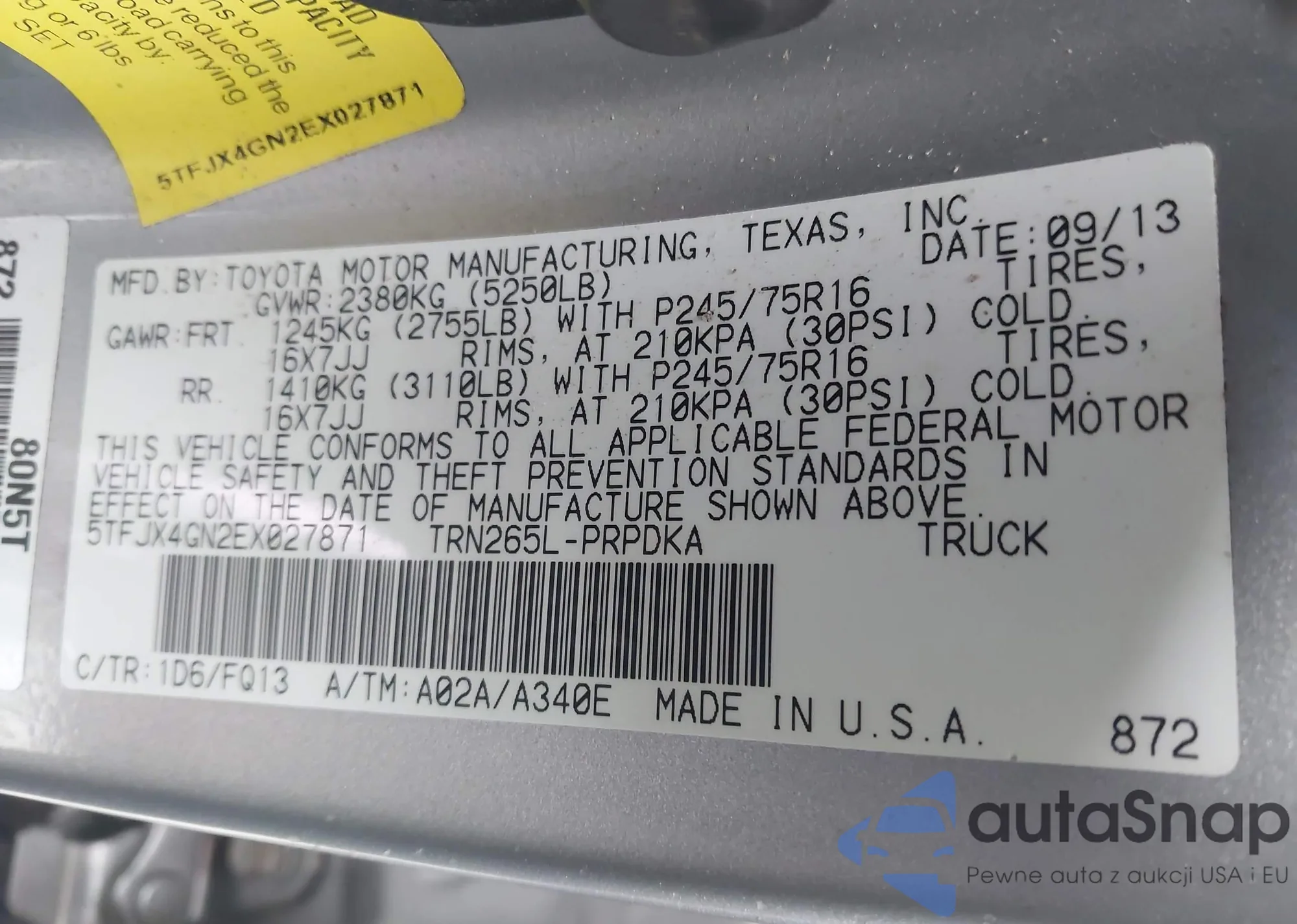 • VIN: 5TFJX4GN2EX027871