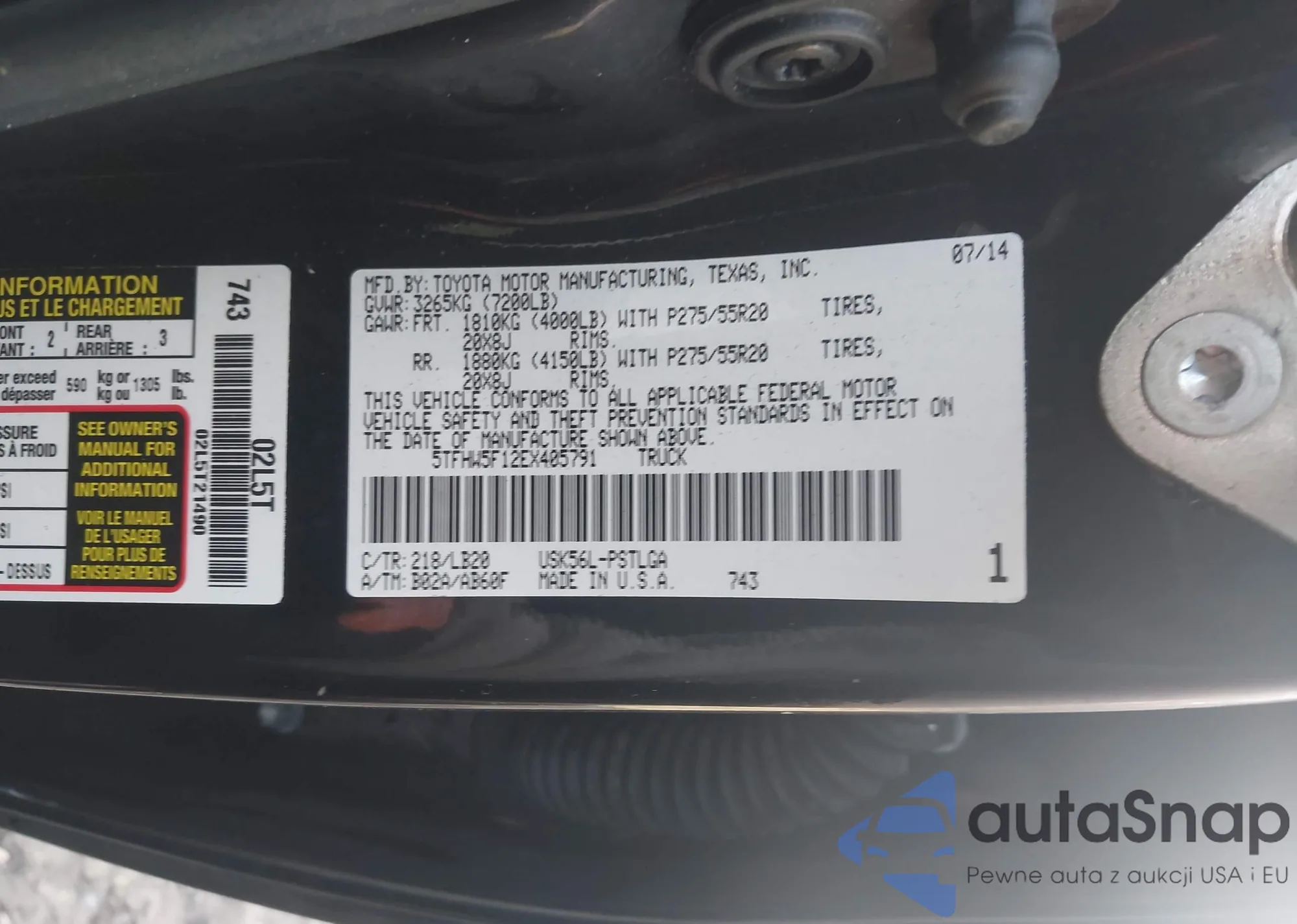 VIN: 5TFHW5F12EX405791