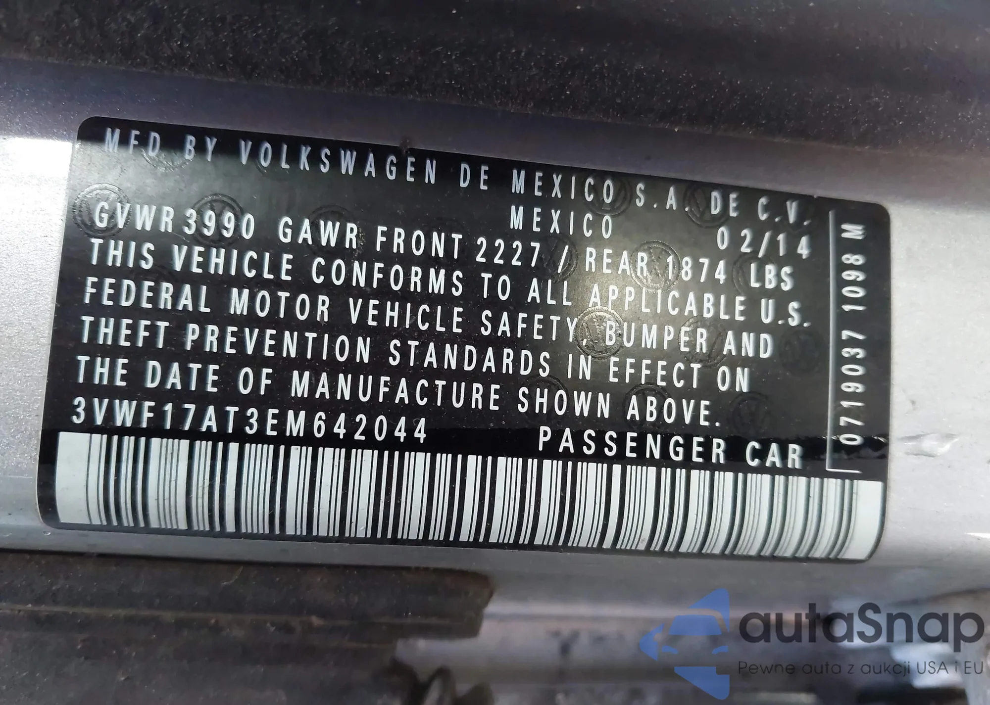 VIN: 3VWF17AT3EM642044