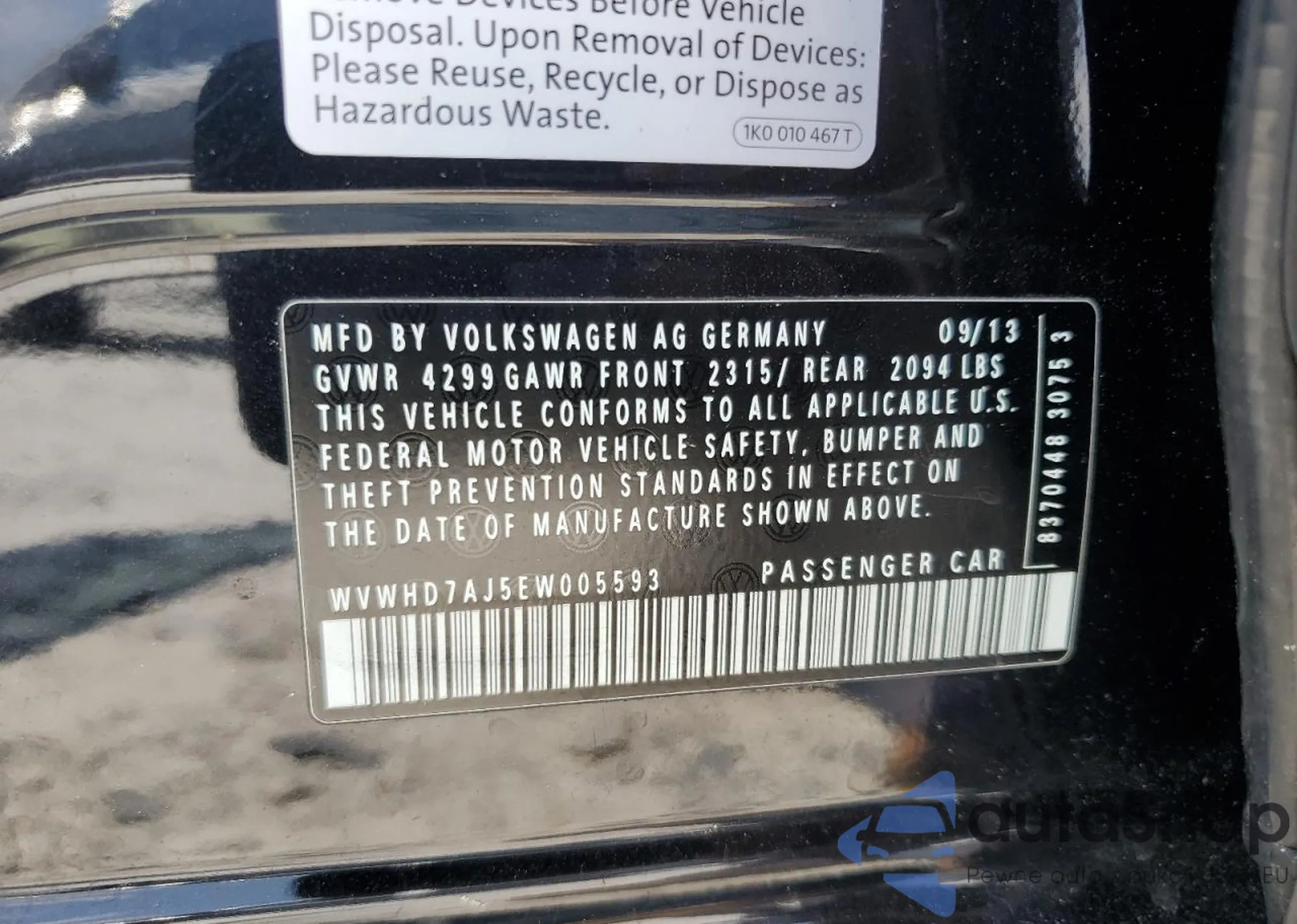 • VIN: WVWHD7AJ5EW005593