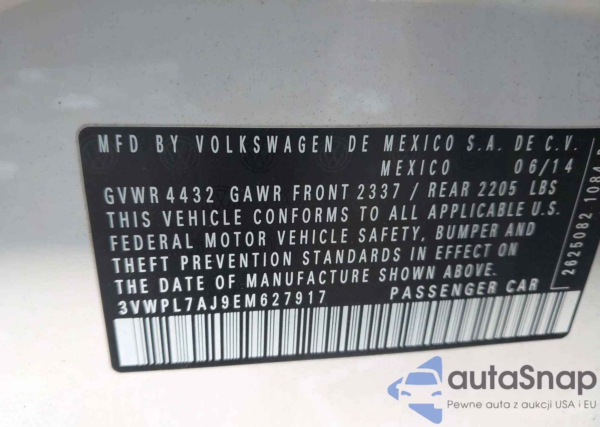 VIN: 3VWPL7AJ9EM627917