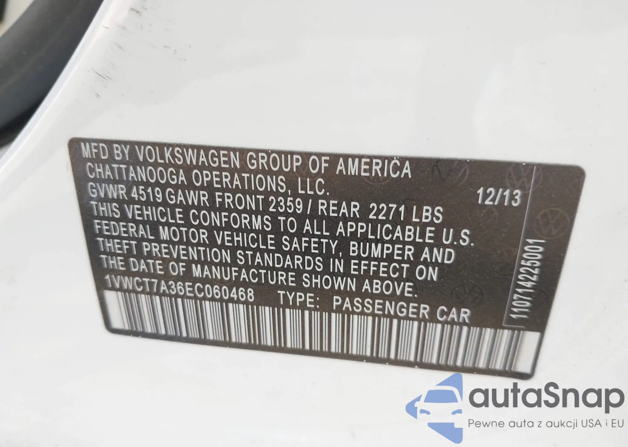 VIN: 1VWCT7A36EC060468