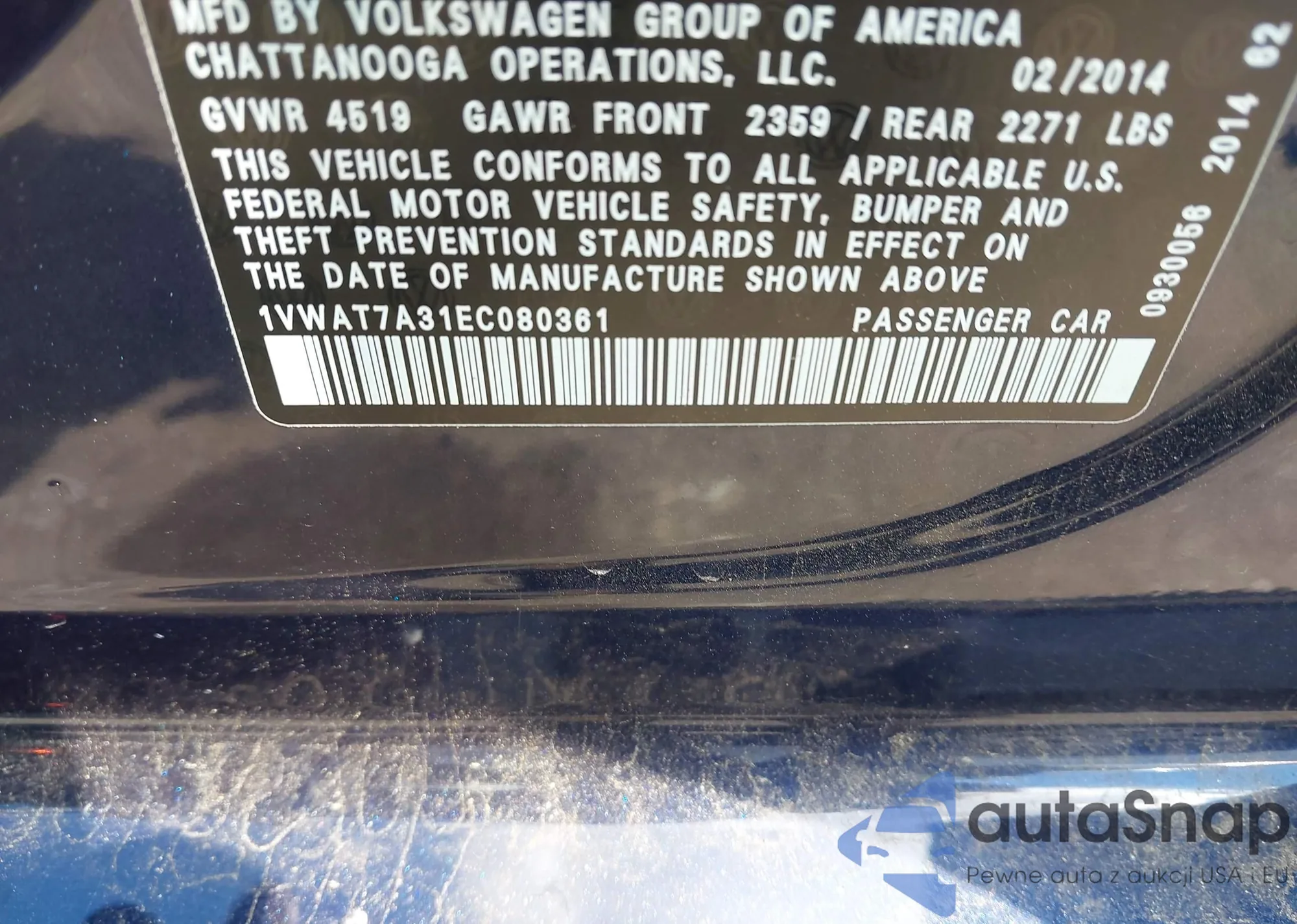 VIN: 1VWAT7A31EC080361