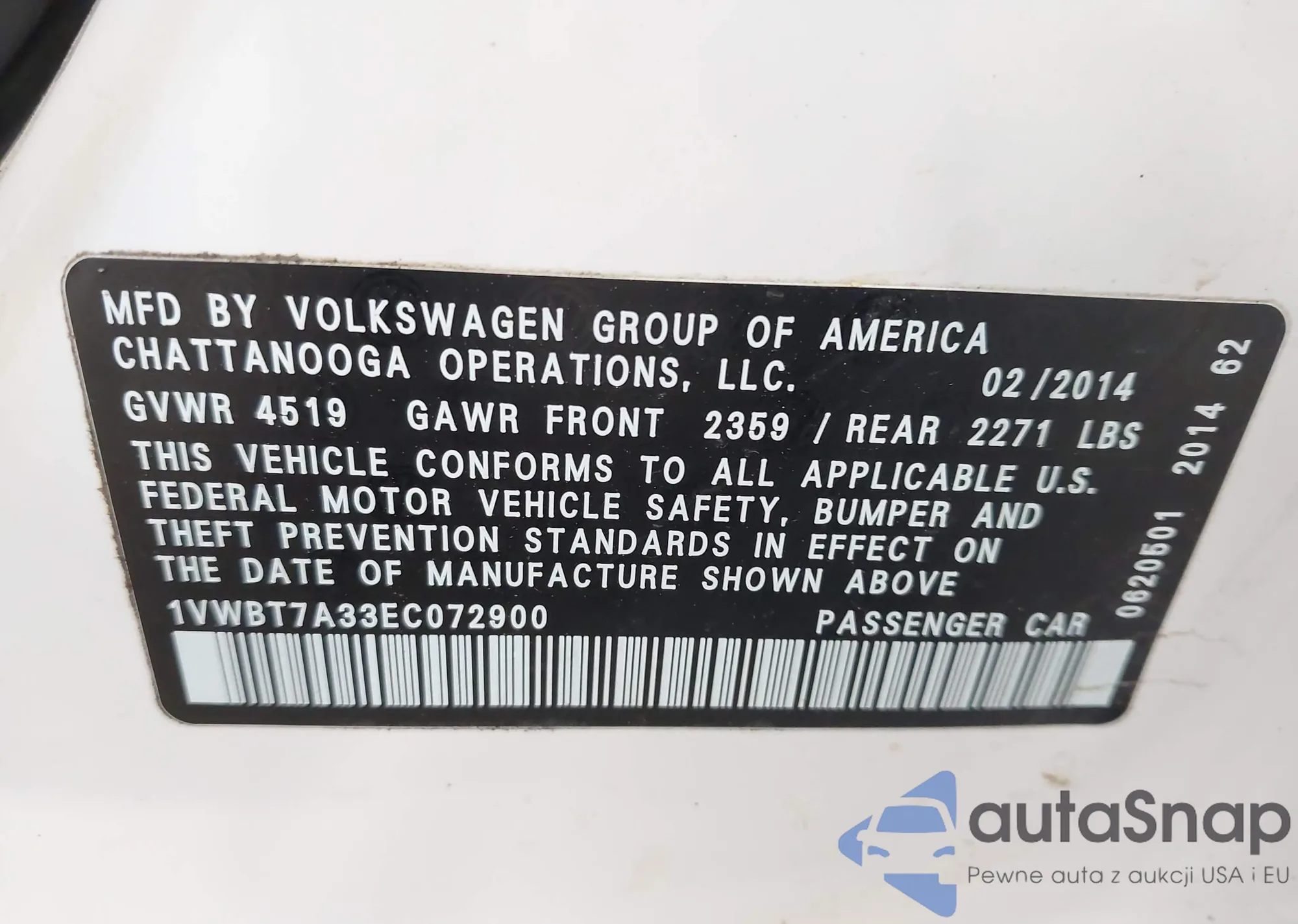 VIN: 1VWBT7A33EC072900