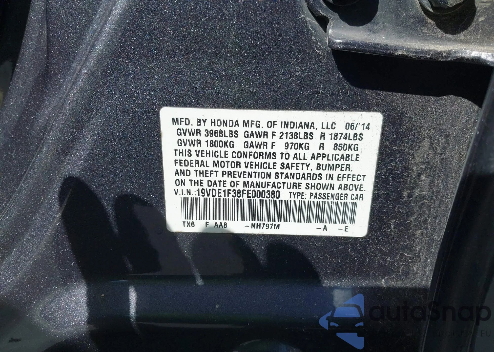 VIN: 19VDE1F38FE000380