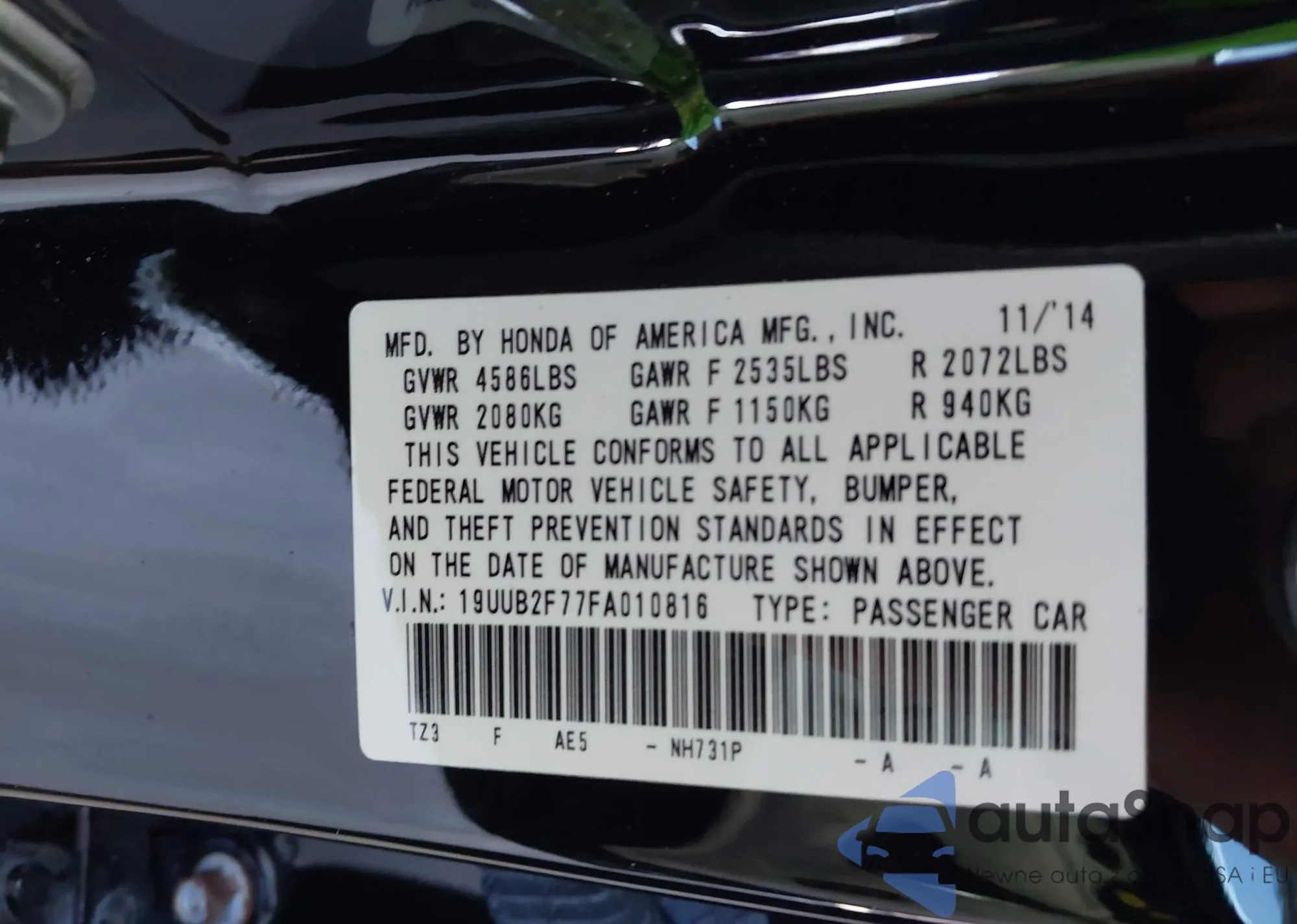 VIN: 19UUB2F77FA010816