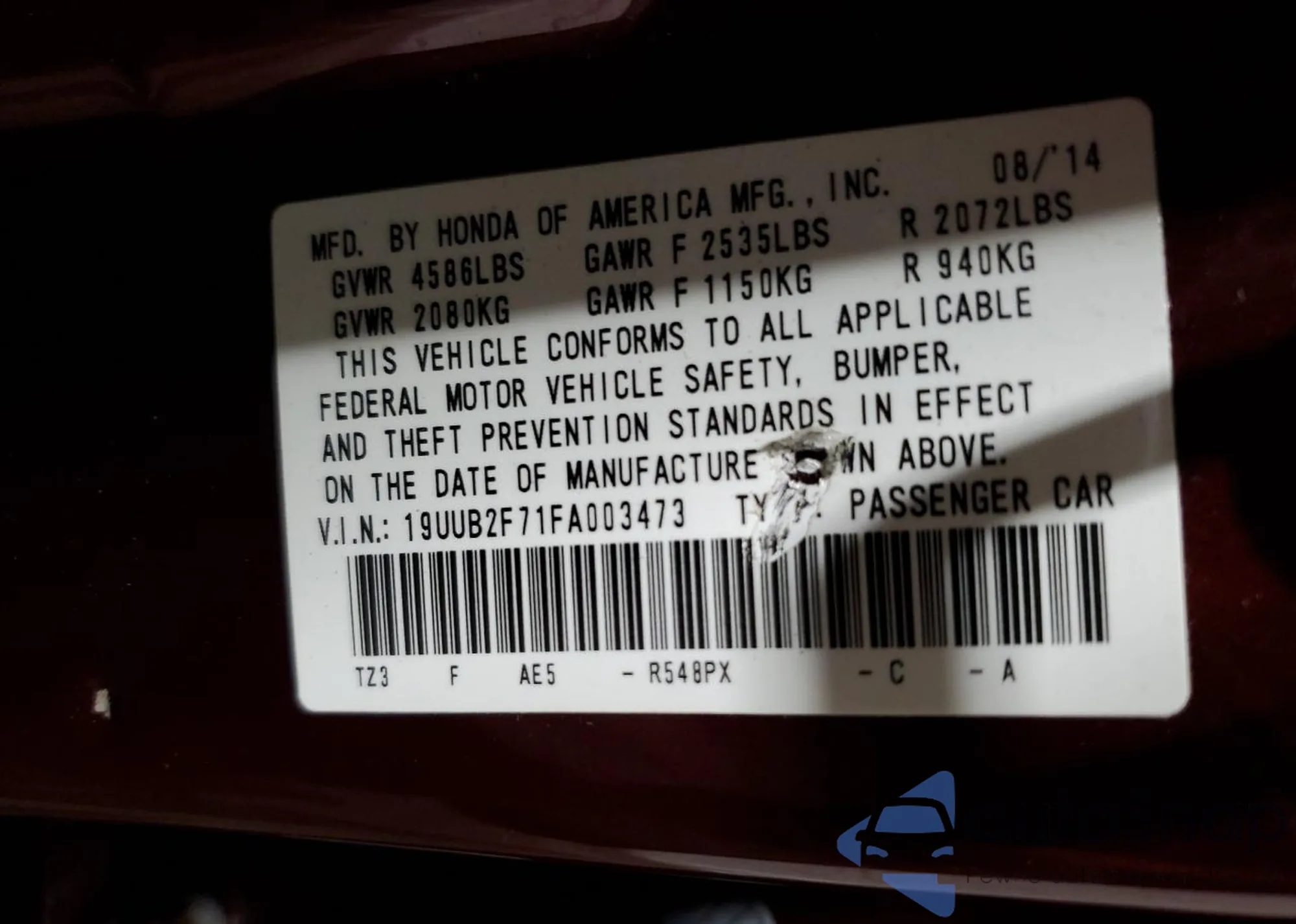 VIN: 19UUB2F71FA003473
