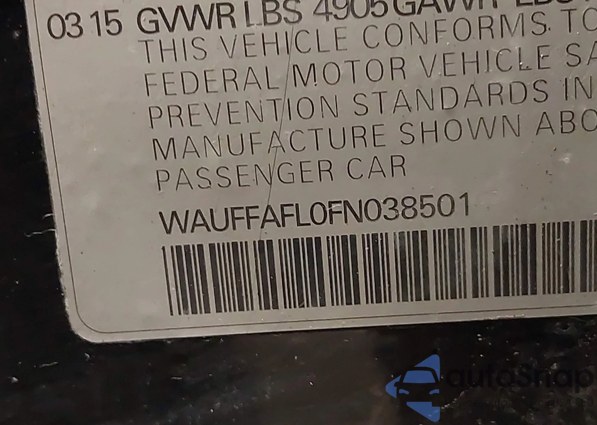 Samochód Audi A4 2015 (VIN WAUFFAFL0FN038501) nie był wcześniej licytowany. Dokumenty są czyste, przebieg odpowiada lub jest niższy niż średnia rynku. Sprzedaje go firma ubezpieczeniowa – polecamy zakup. Dostawa do portu zajmie ok. 6–8 tygodni.