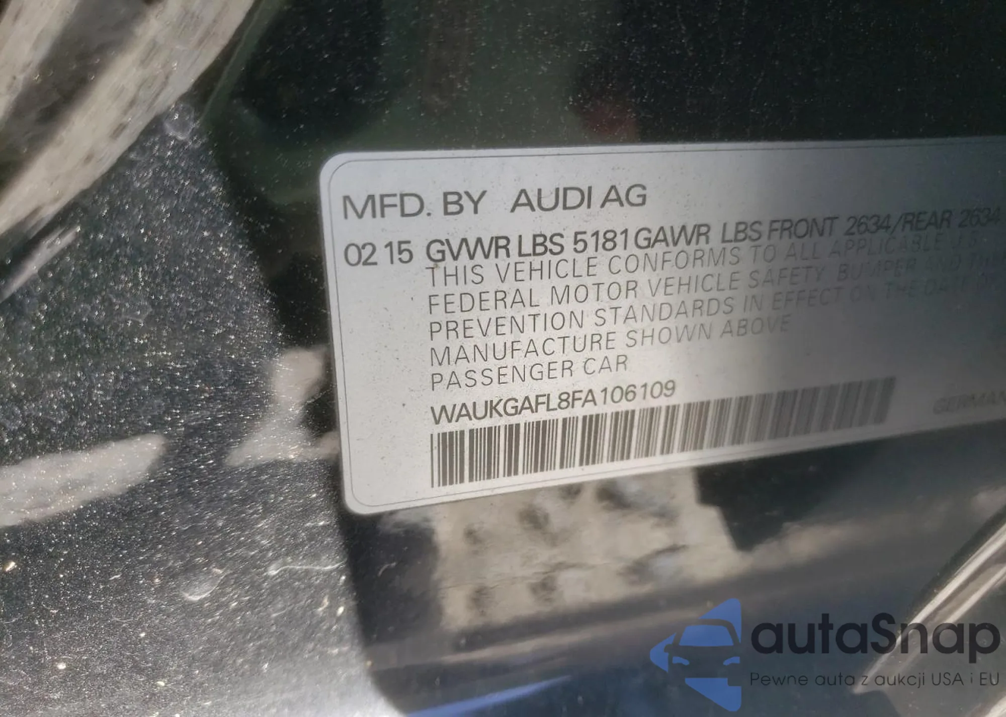 VIN: WAUKGAFL8FA106109