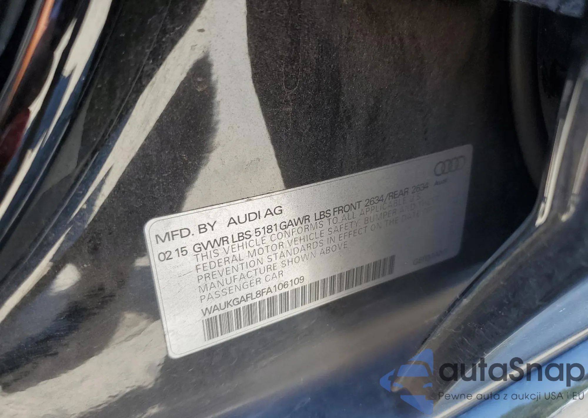 VIN: WAUKGAFL8FA106109