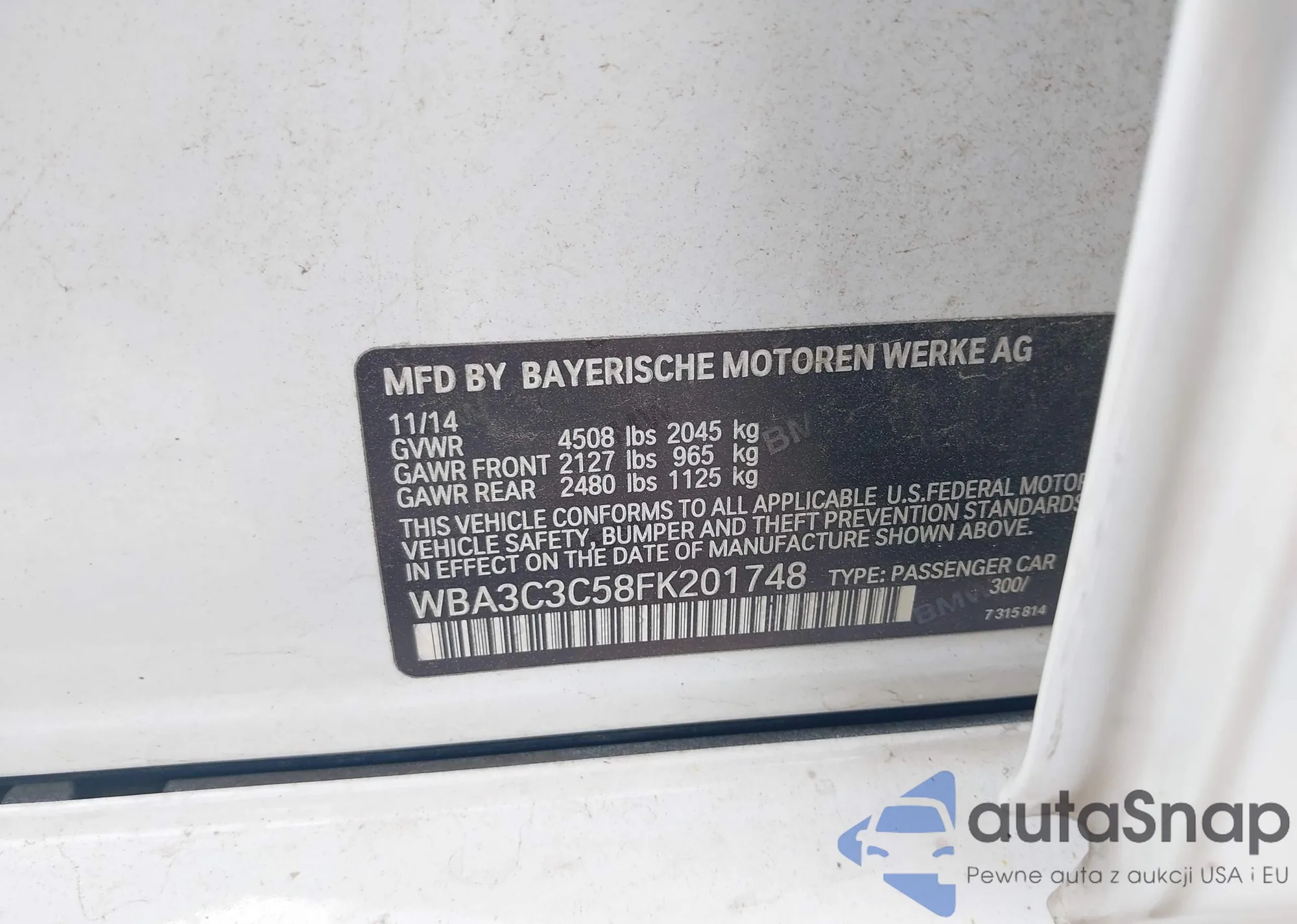 VIN: WBA3C3C58FK201748
