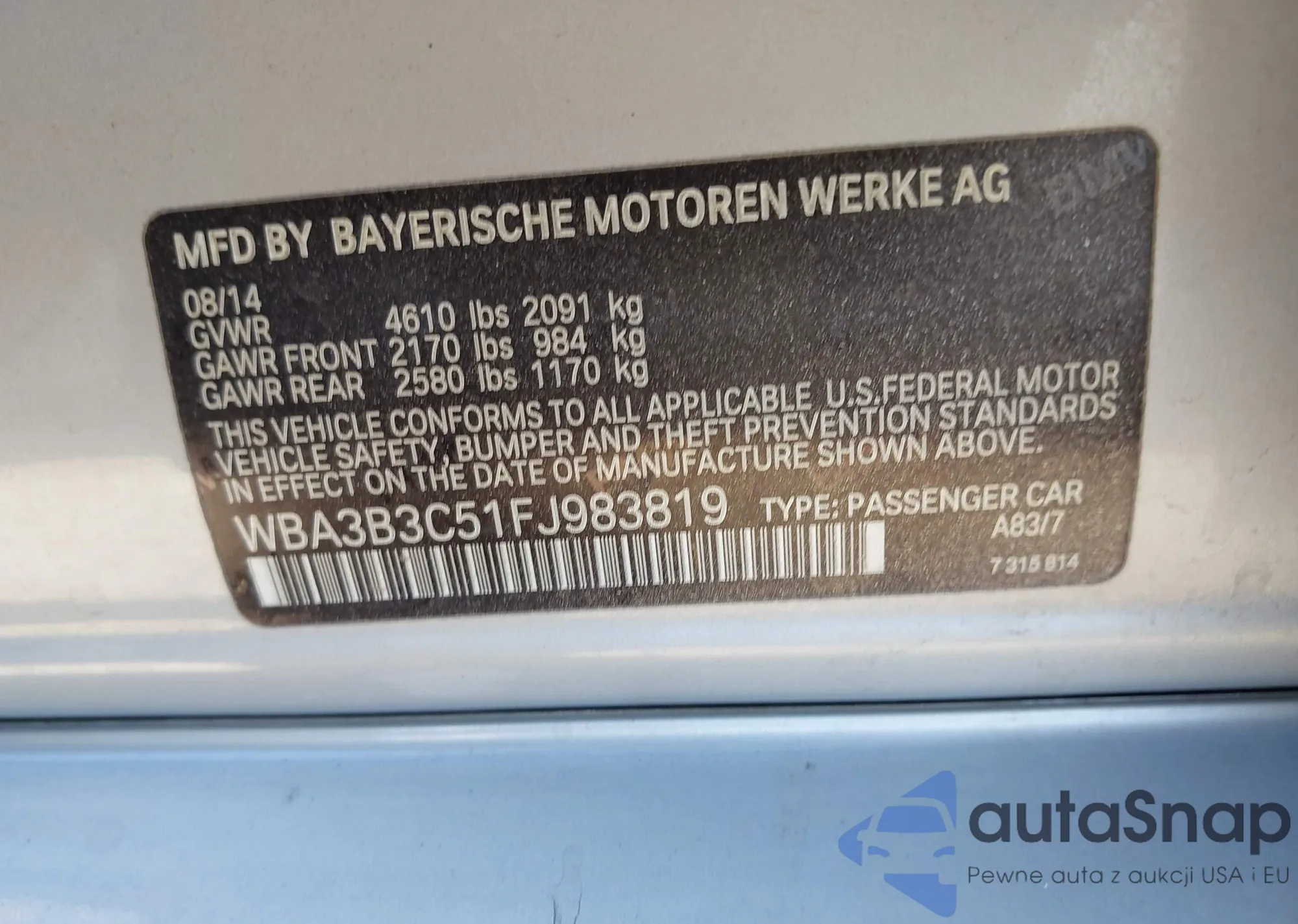 • VIN: WBA3B3C51FJ983819