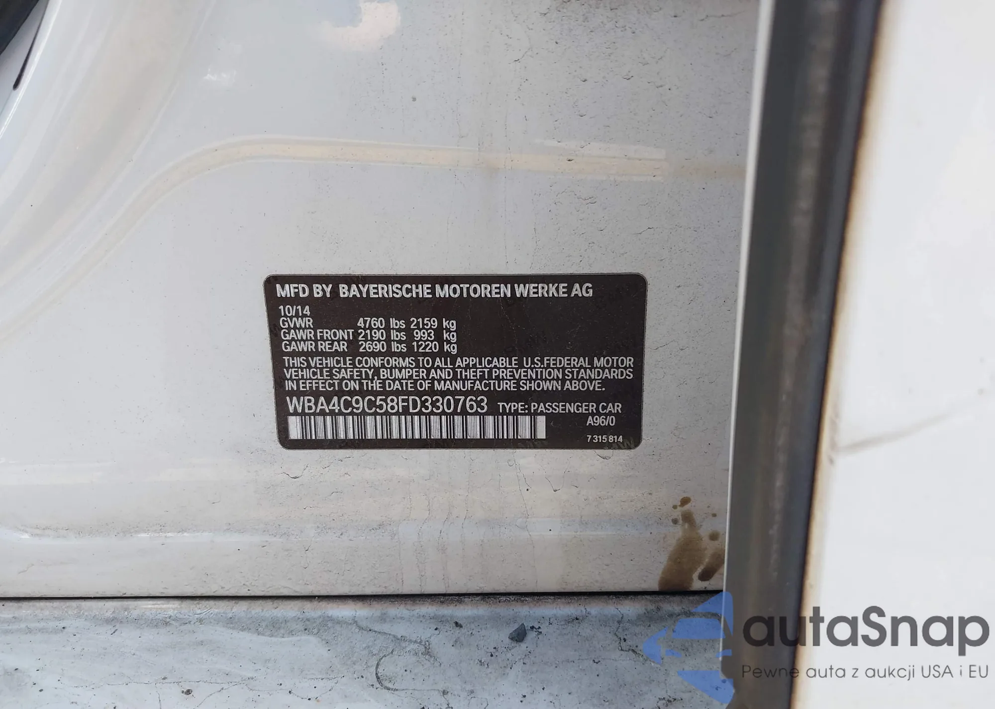 VIN: WBA4C9C58FD330763