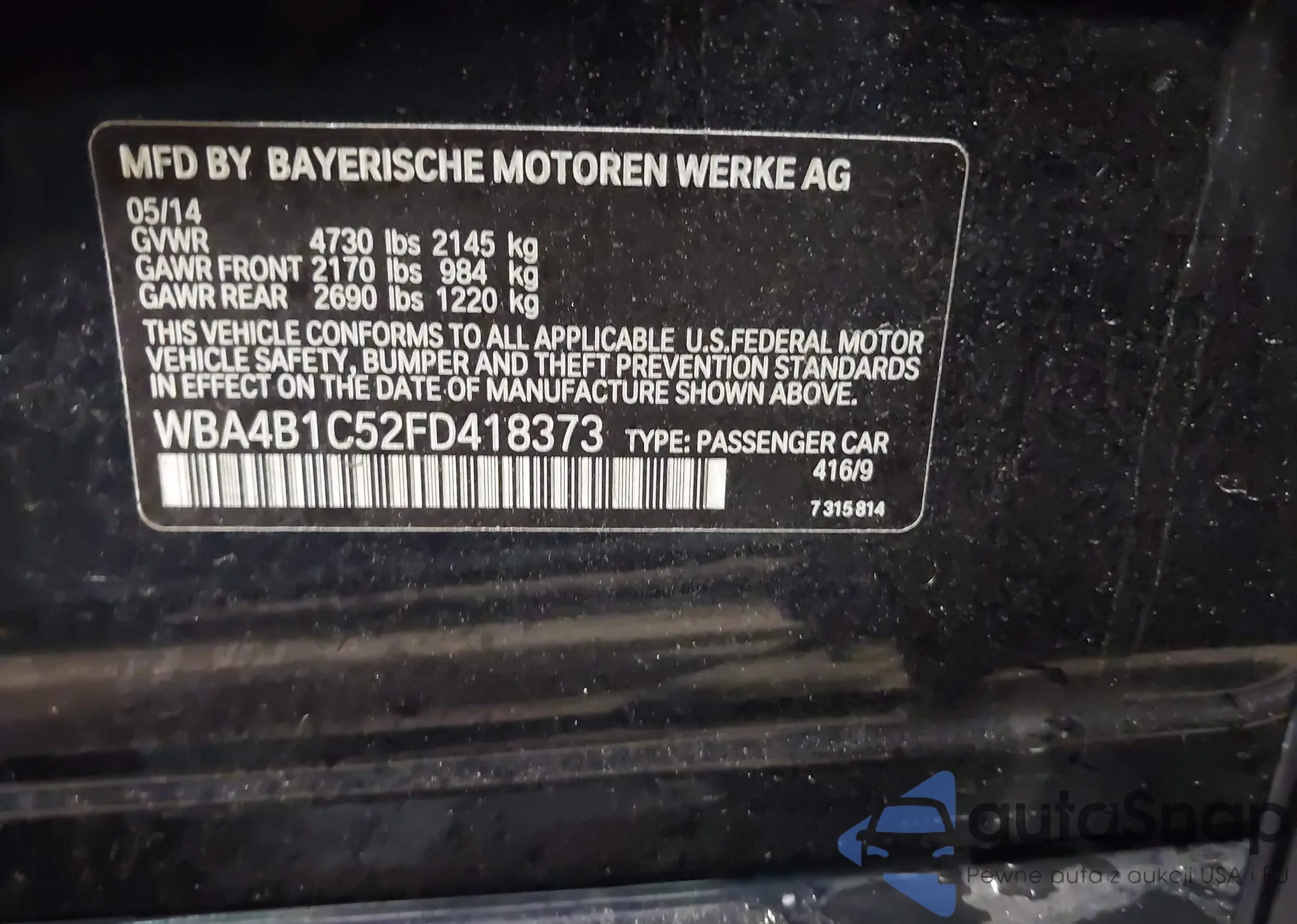 • VIN: WBA4B1C52FD418373