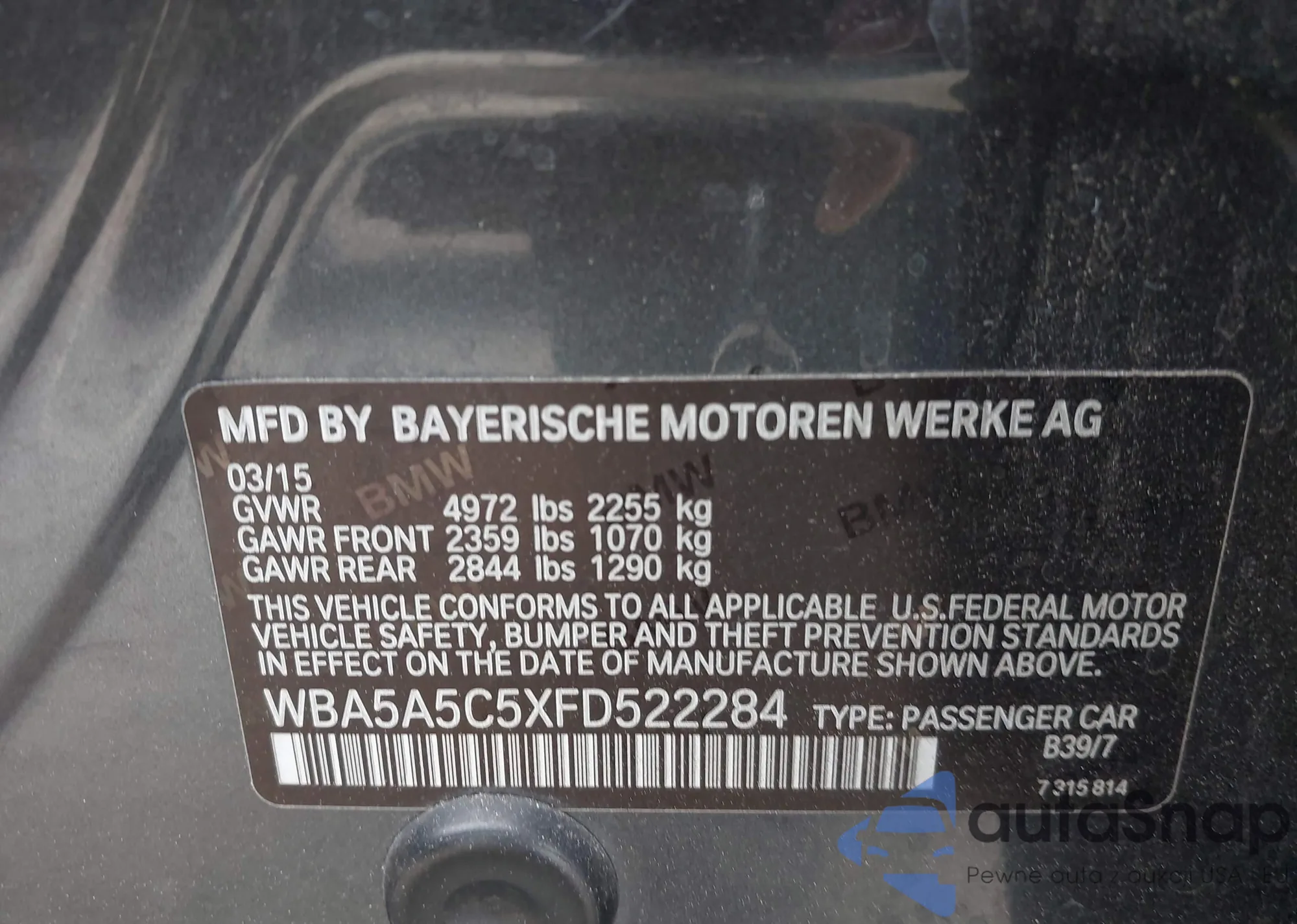 • VIN: WBA5A5C5XFD522284