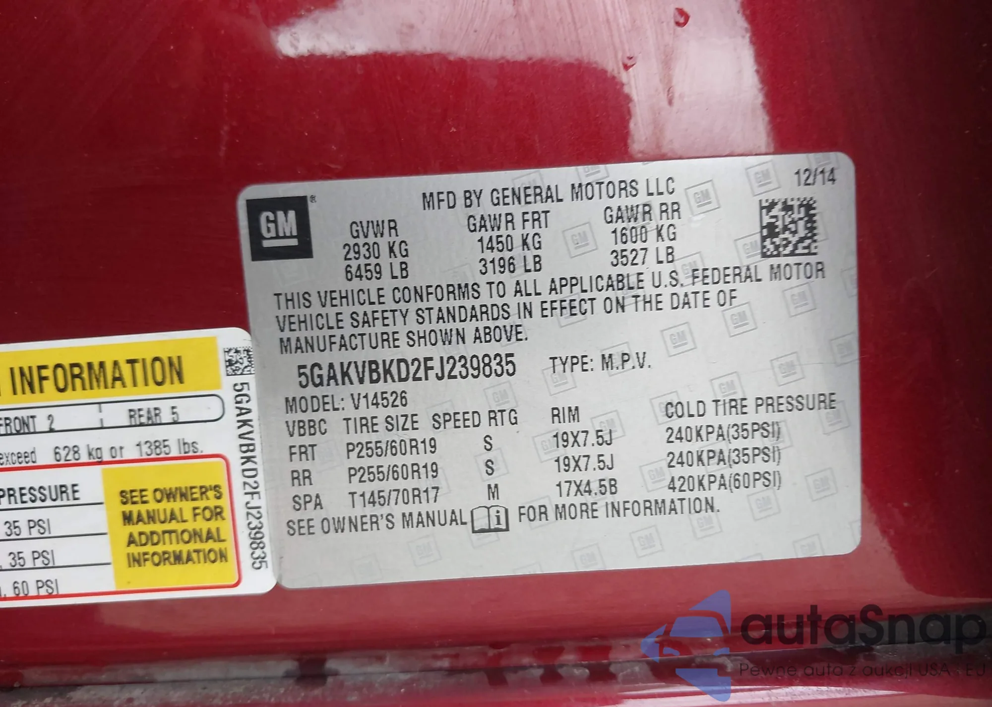 VIN: 5GAKVBKD2FJ239835