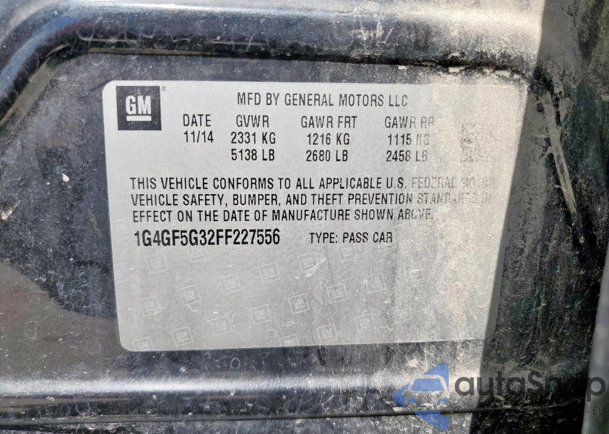 • VIN: 1G4GF5G32FF227556
