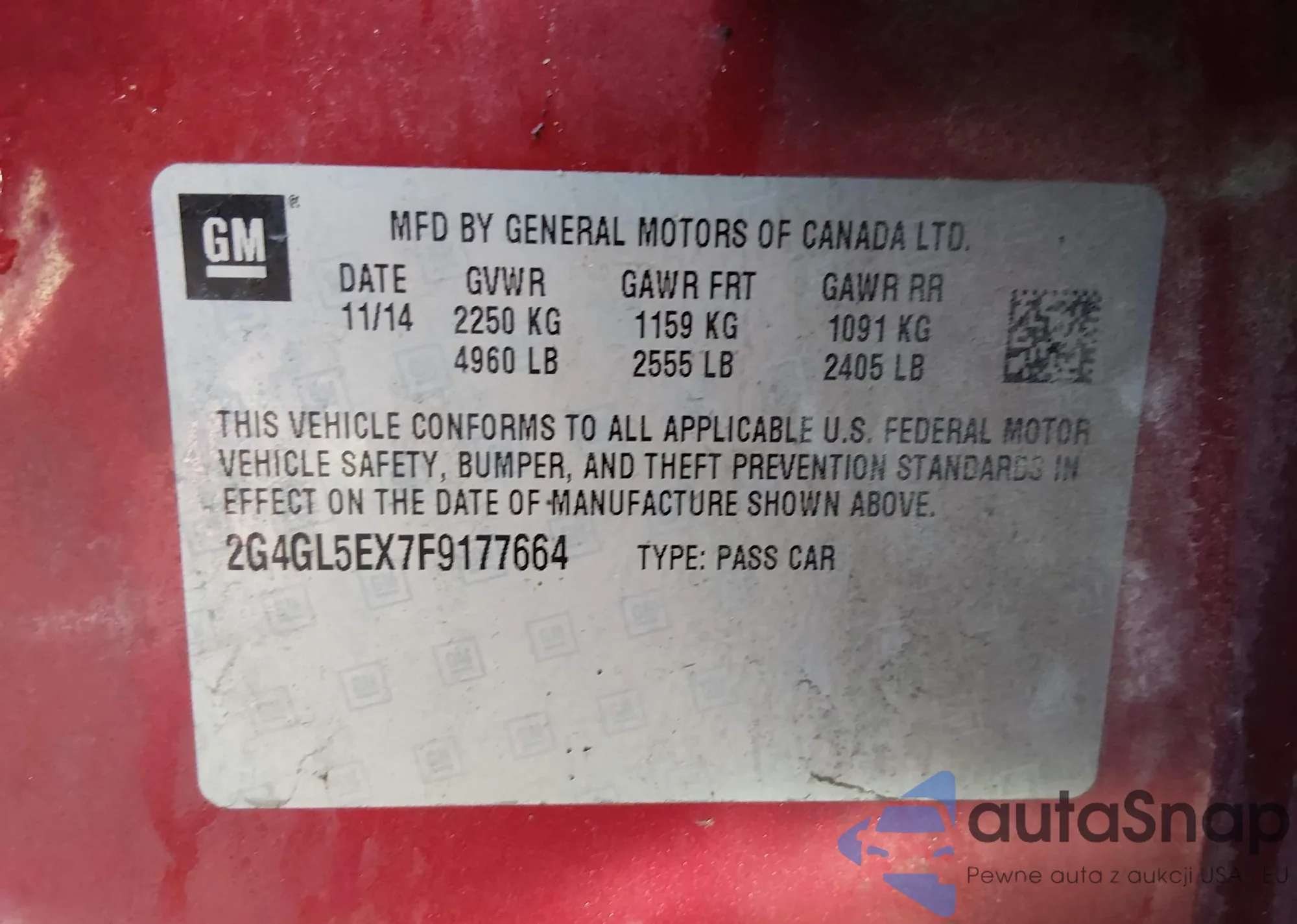 • VIN: 2G4GL5EX7F9177664