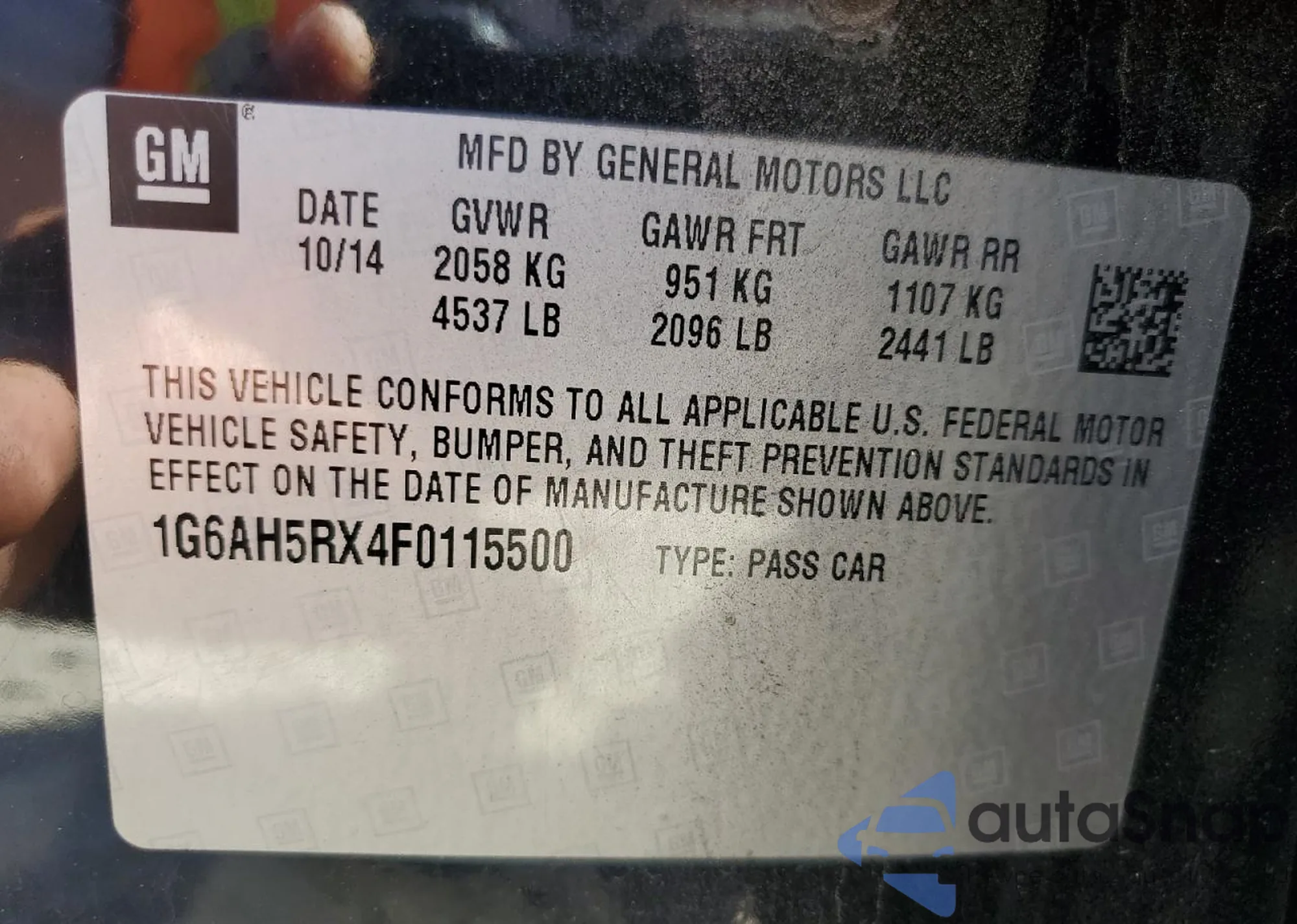 VIN: 1G6AH5RX4F0115500