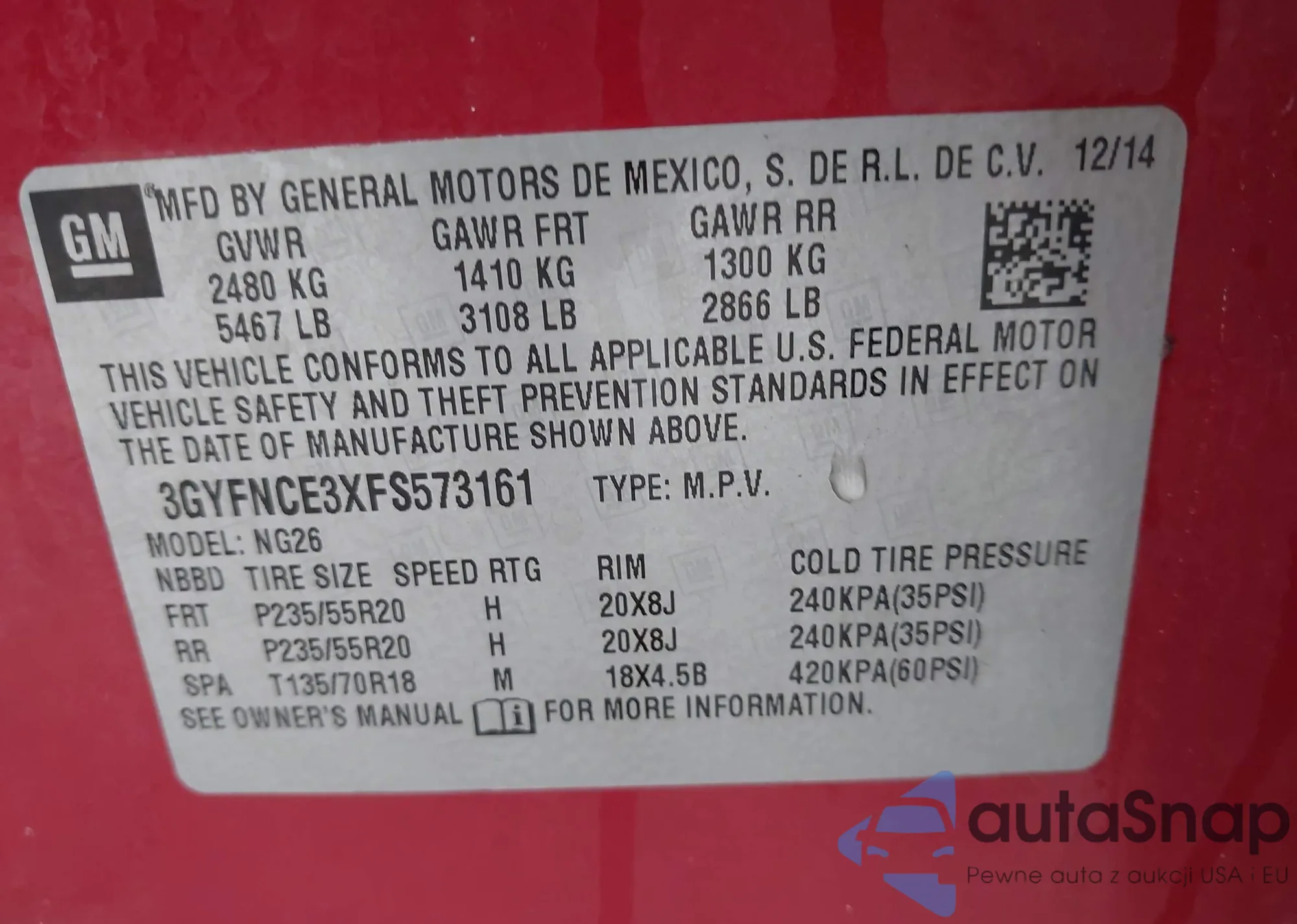 VIN: 3GYFNCE3XFS573161