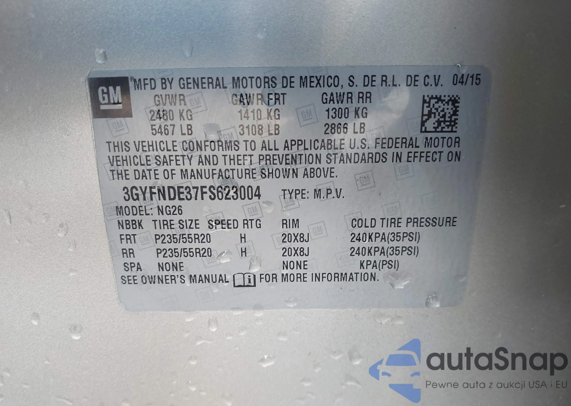 VIN: 3GYFNDE37FS623004