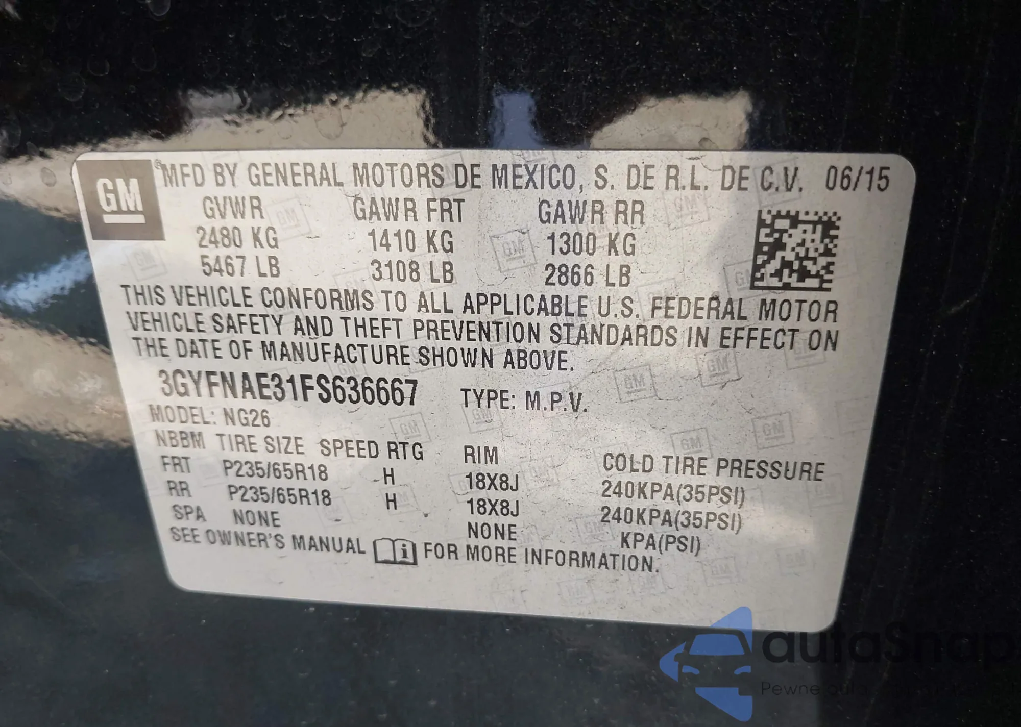 • VIN: 3GYFNAE31FS636667