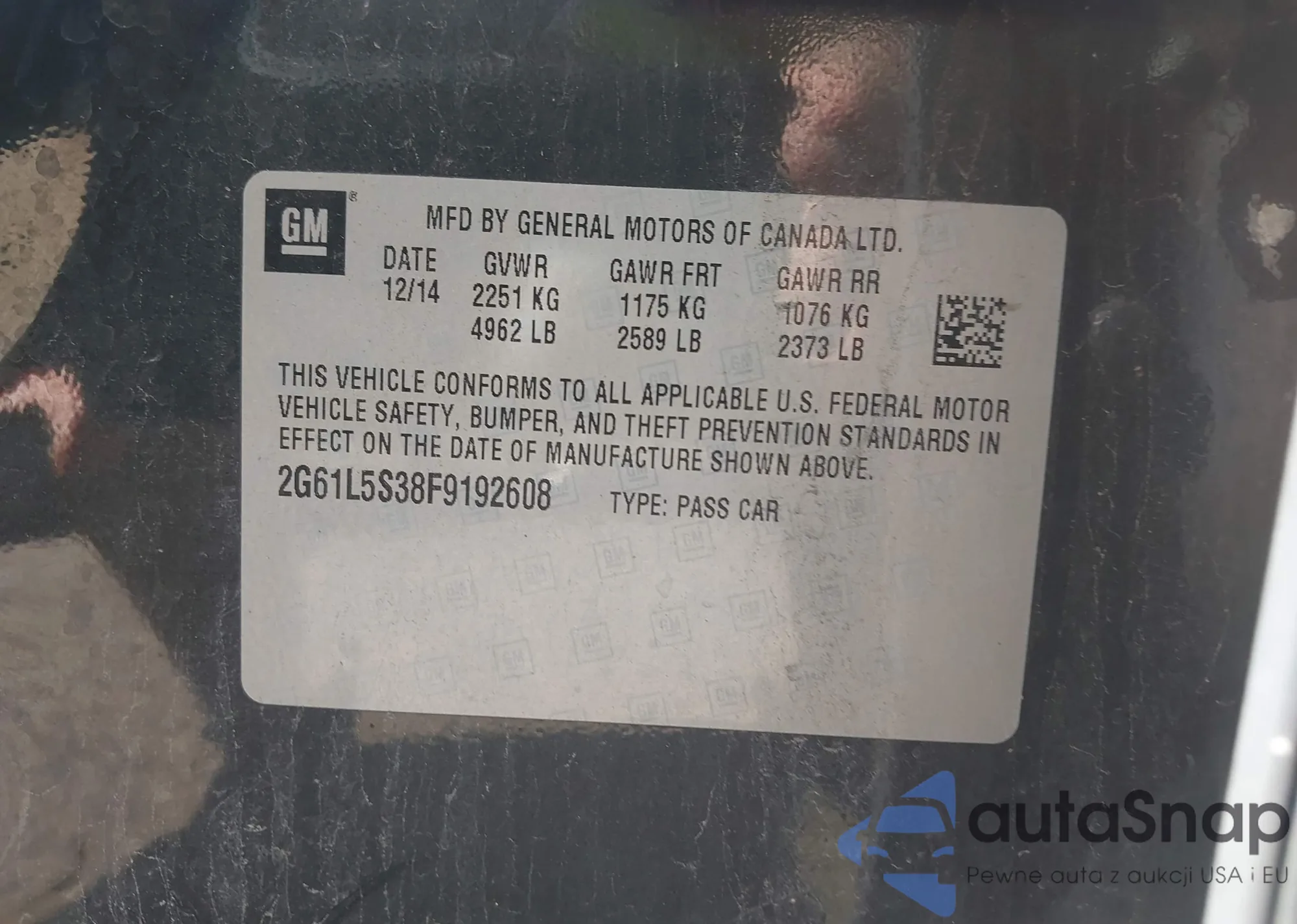 • VIN: 2G61L5S38F9192608