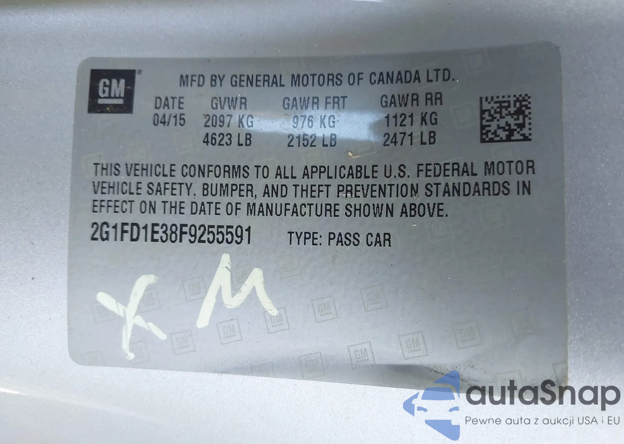 VIN: 2G1FD1E38F9255591