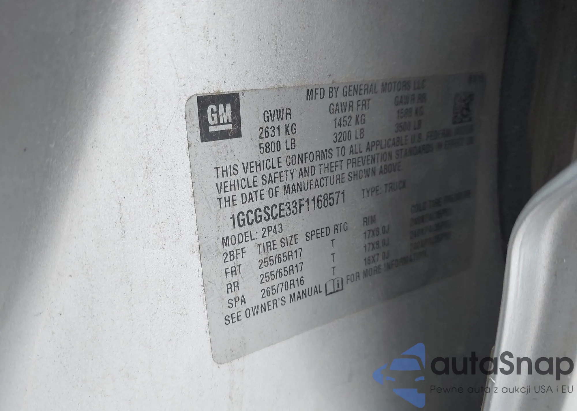 VIN: 1GCGSCE33F1168571