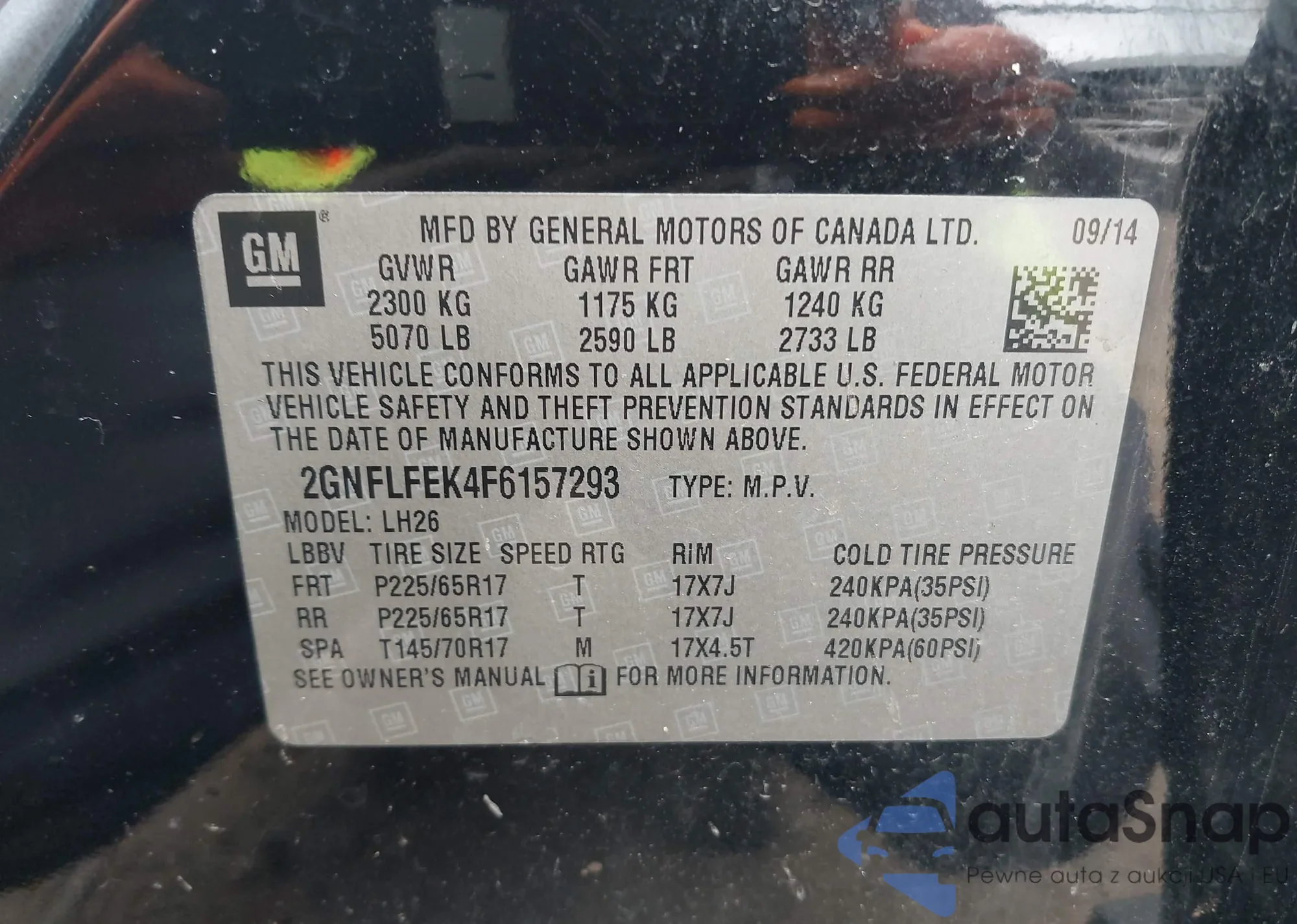 VIN: 2GNFLFEK4F6157293